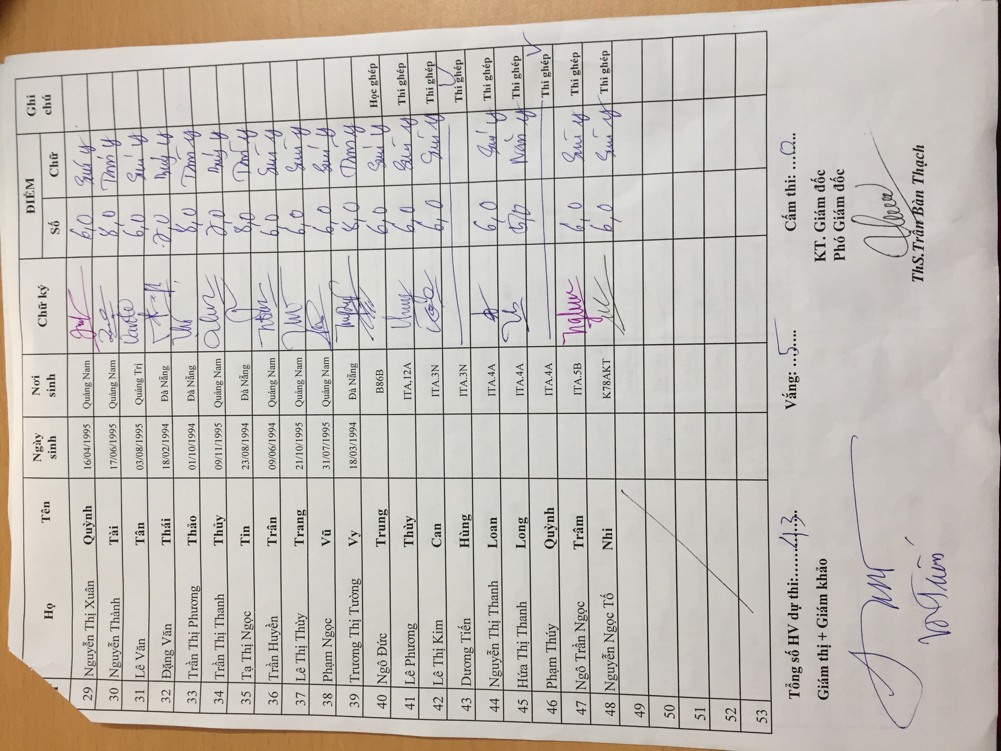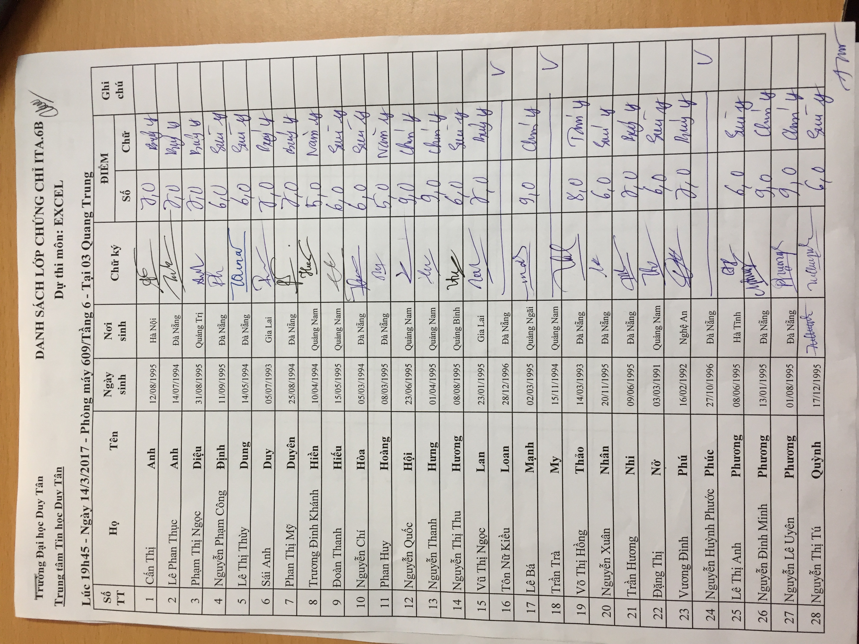 Điểm thi hết môn Excel lớp ITA.6B (17/03/2017)
