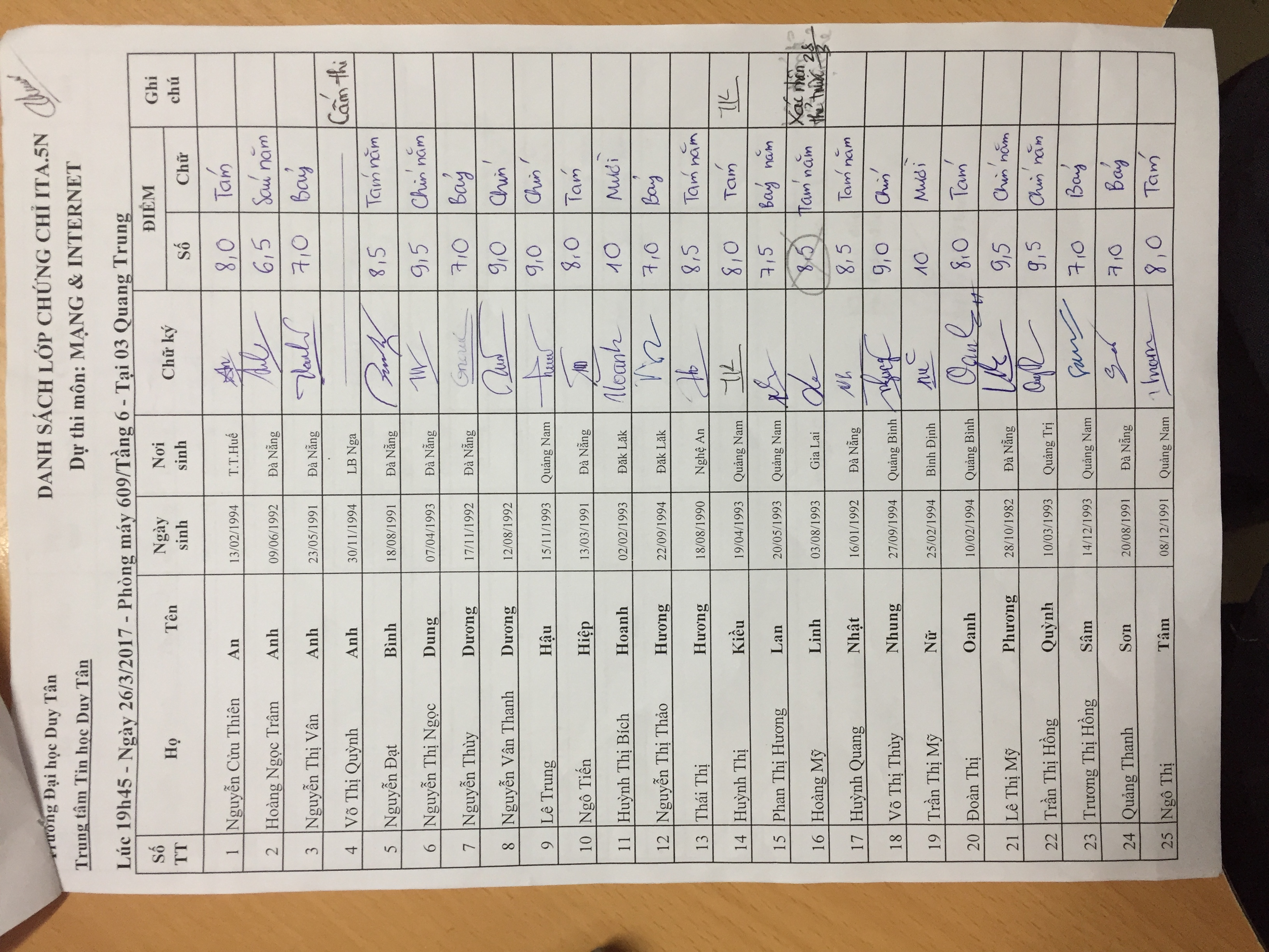 Điểm thi hết môn Lan/Internet lớp ITA.5N (28/03/2017)