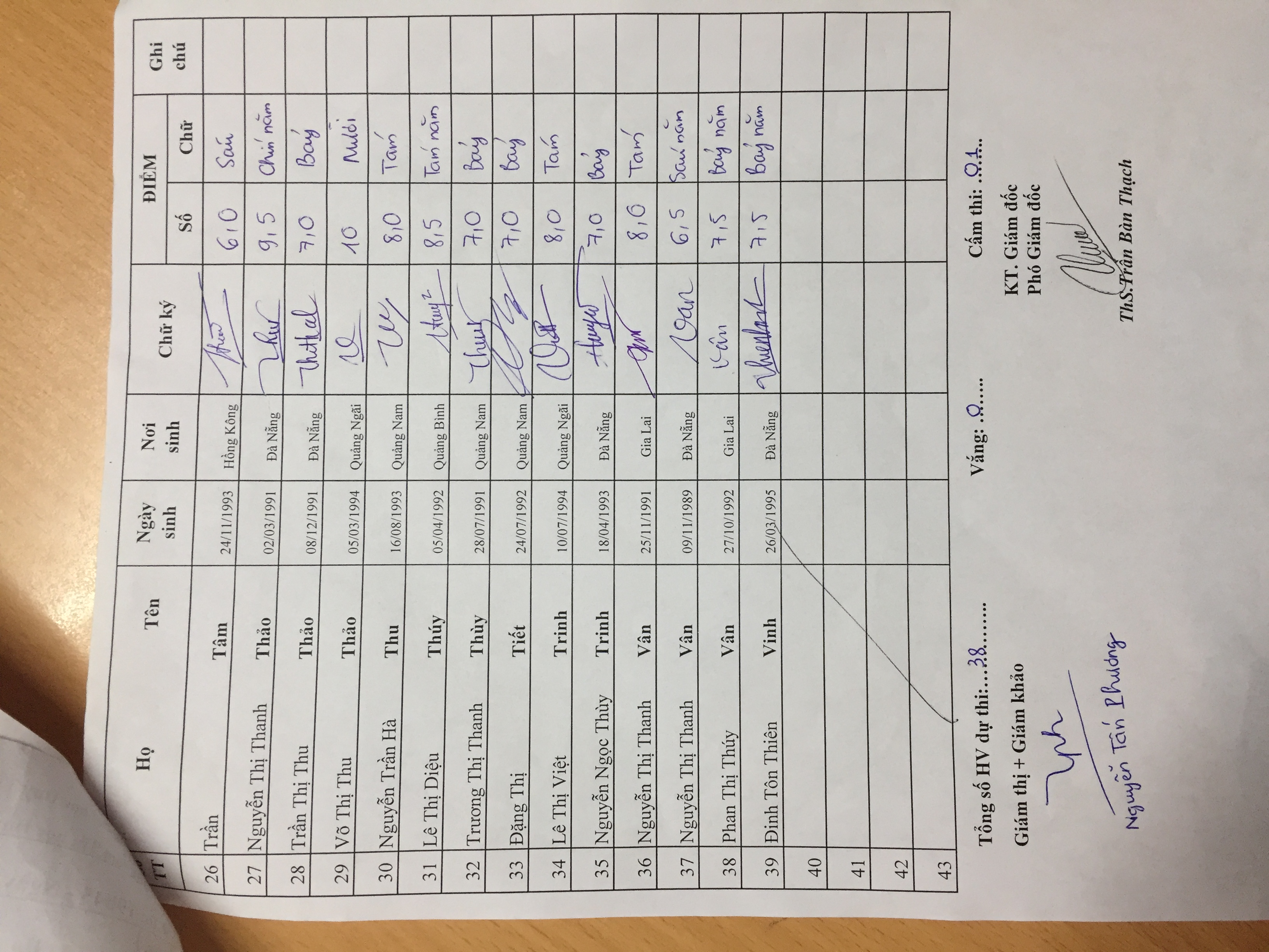 Danh sách thi