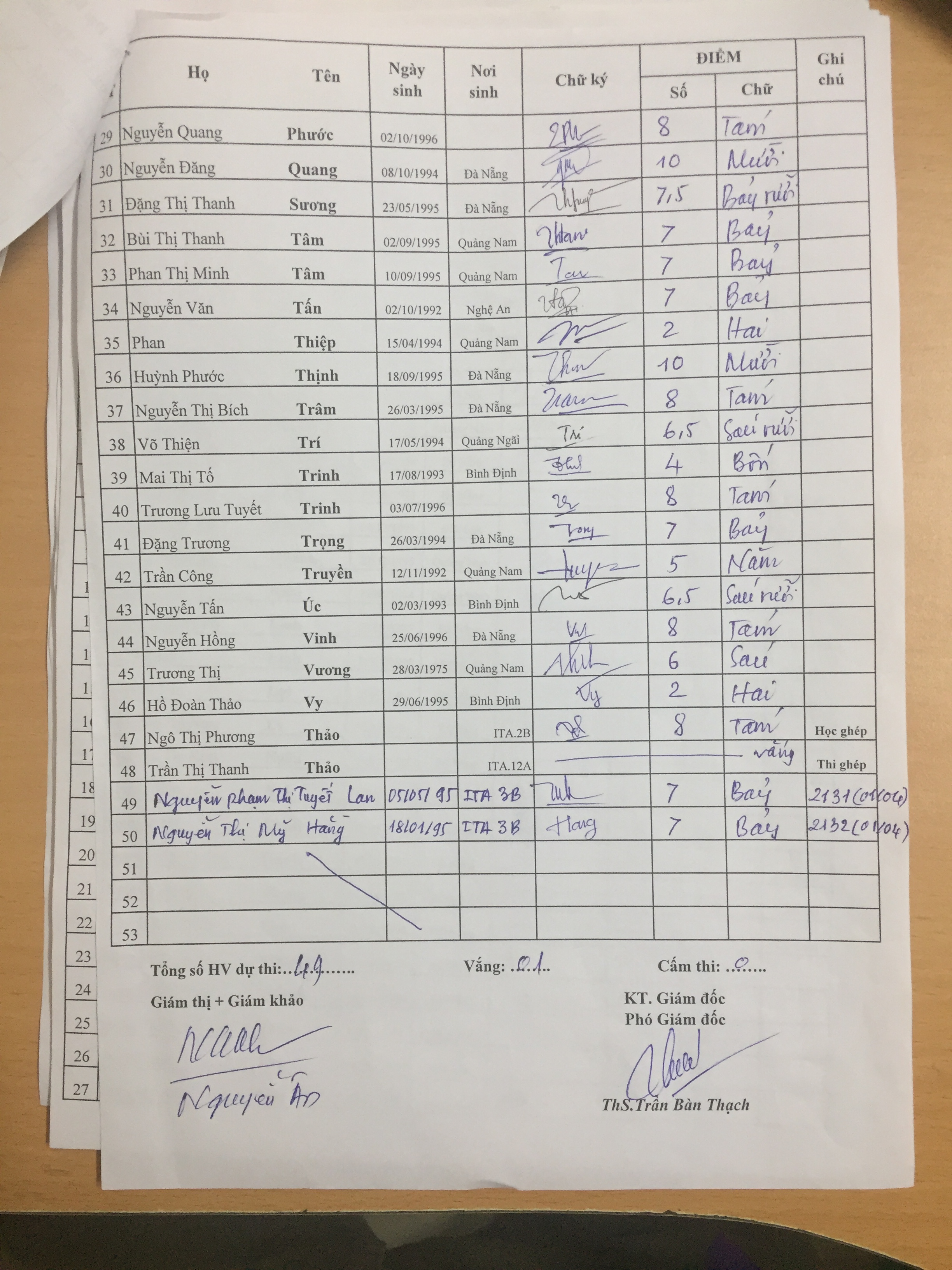 Danh sách thi