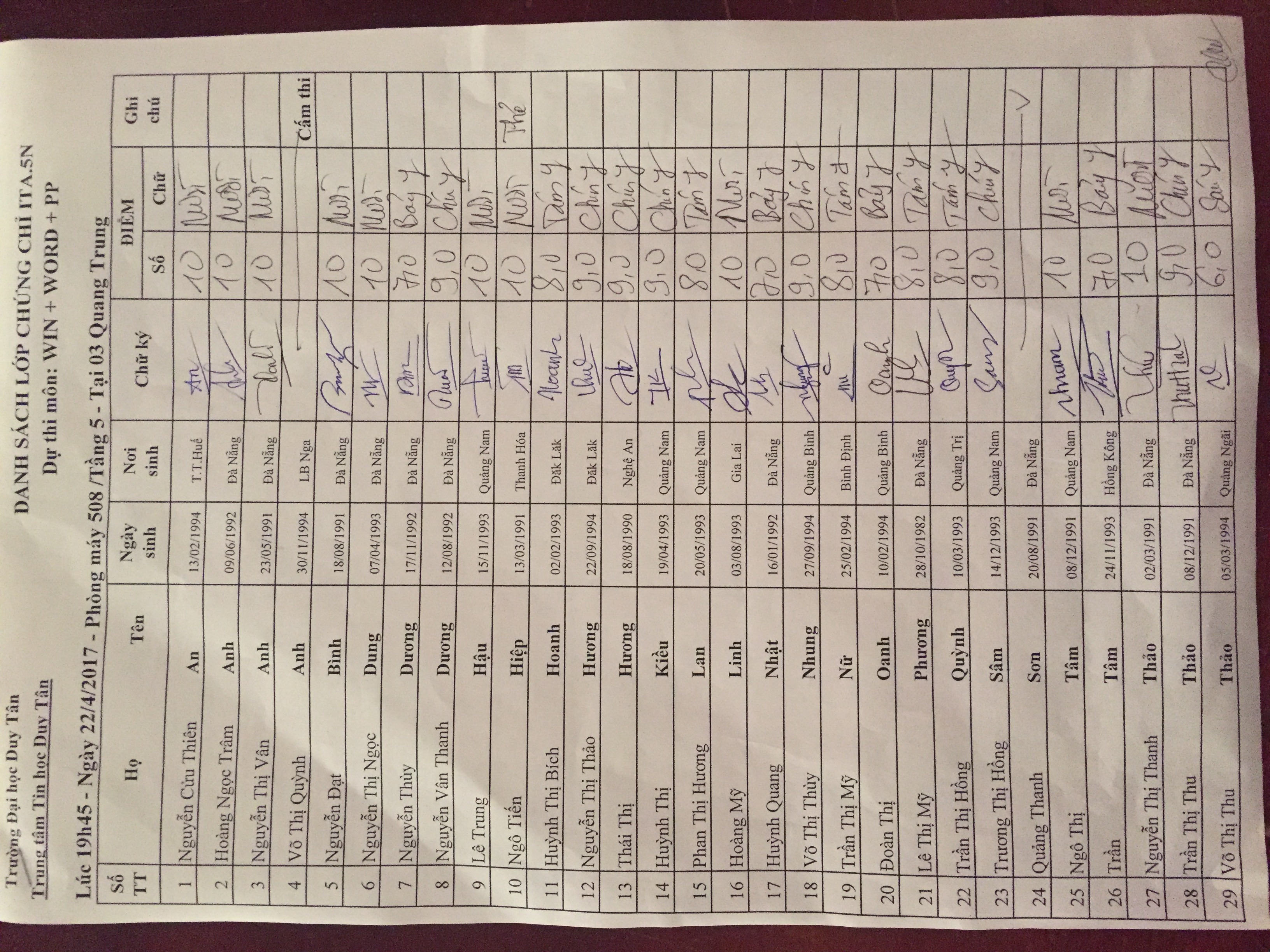 Điểm thi hết môn WWP lớp ITA.5N (25/04/2017)