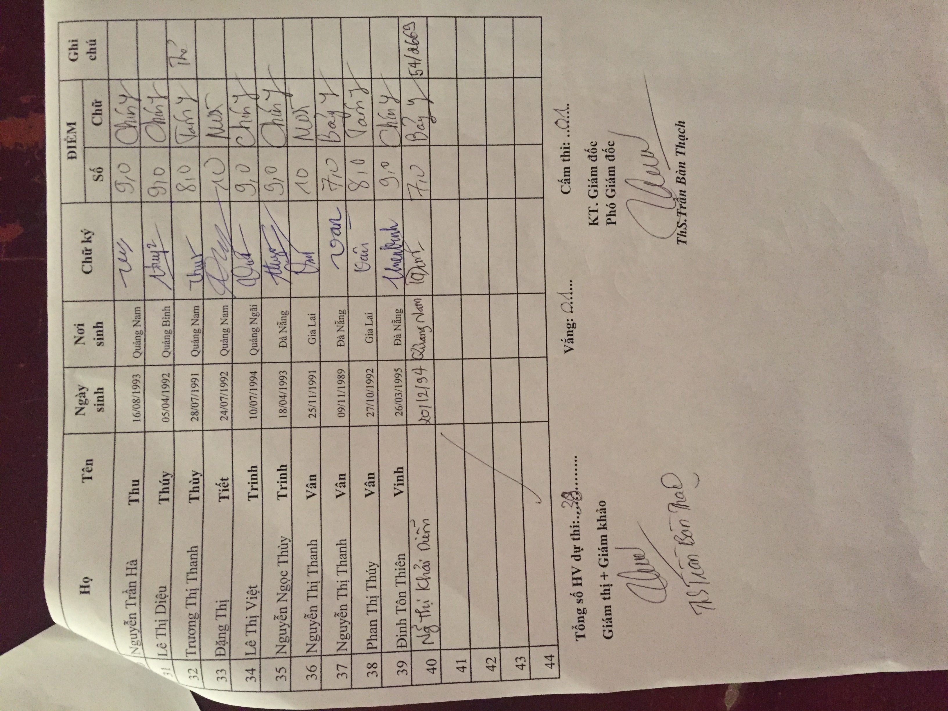Danh sách thi