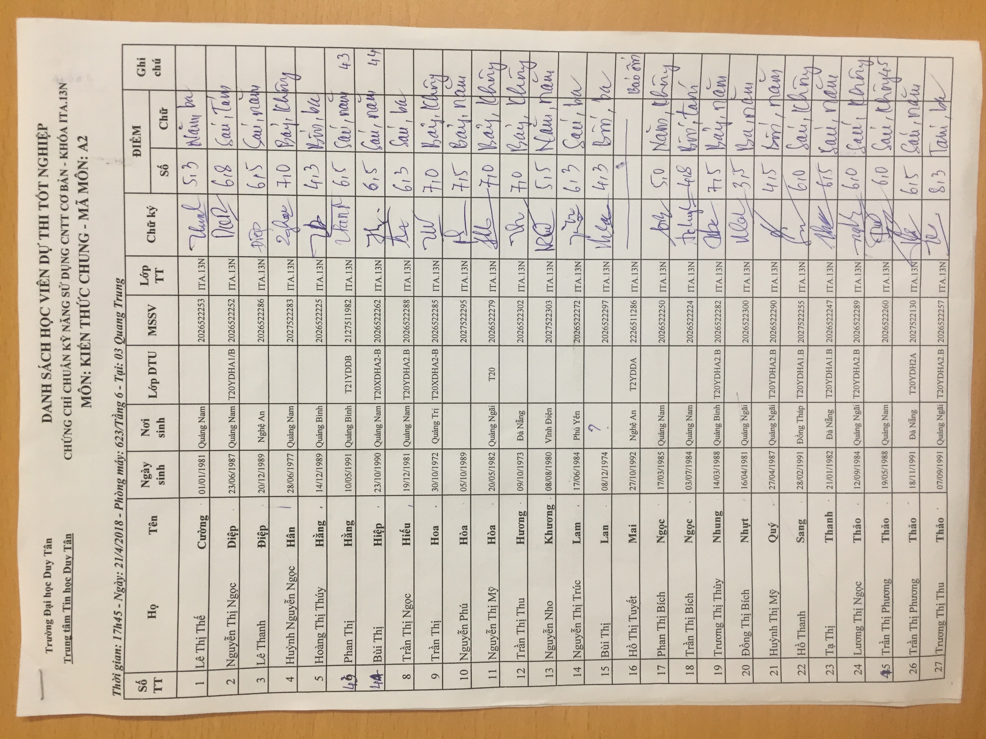 Điểm sát hạch Chứng chỉ Ứng dụng CNTT Nâng cao suất 15h00 ngày 25/01/2026