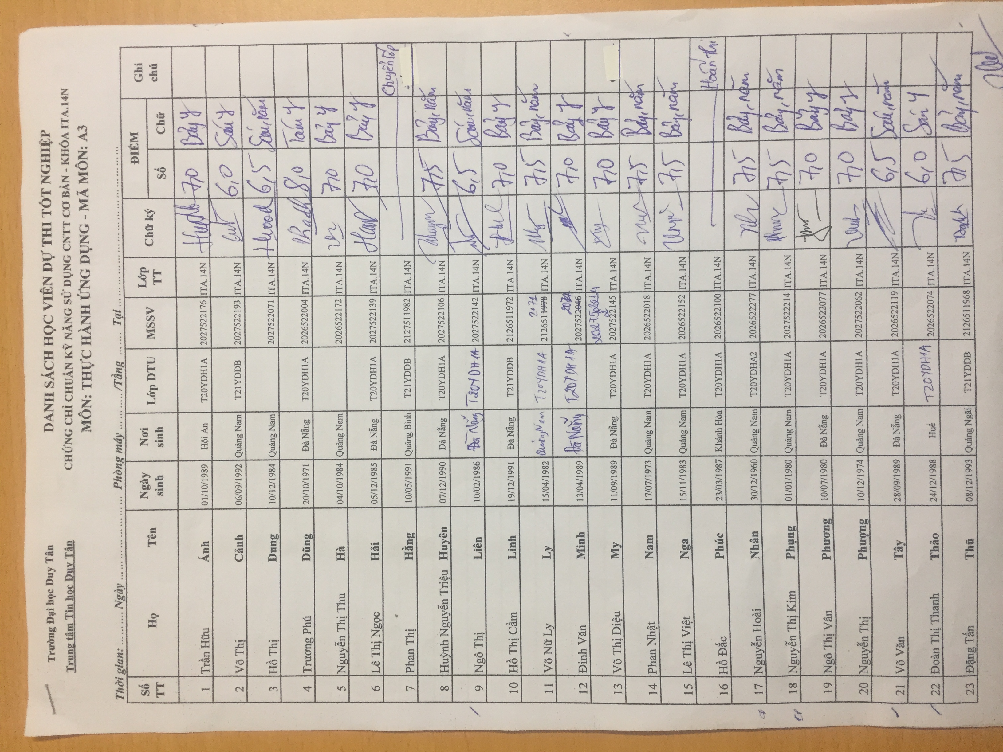 Điểm sát hạch Chứng chỉ Ứng dụng CNTT Nâng cao suất 15h00 ngày 25/01/2026