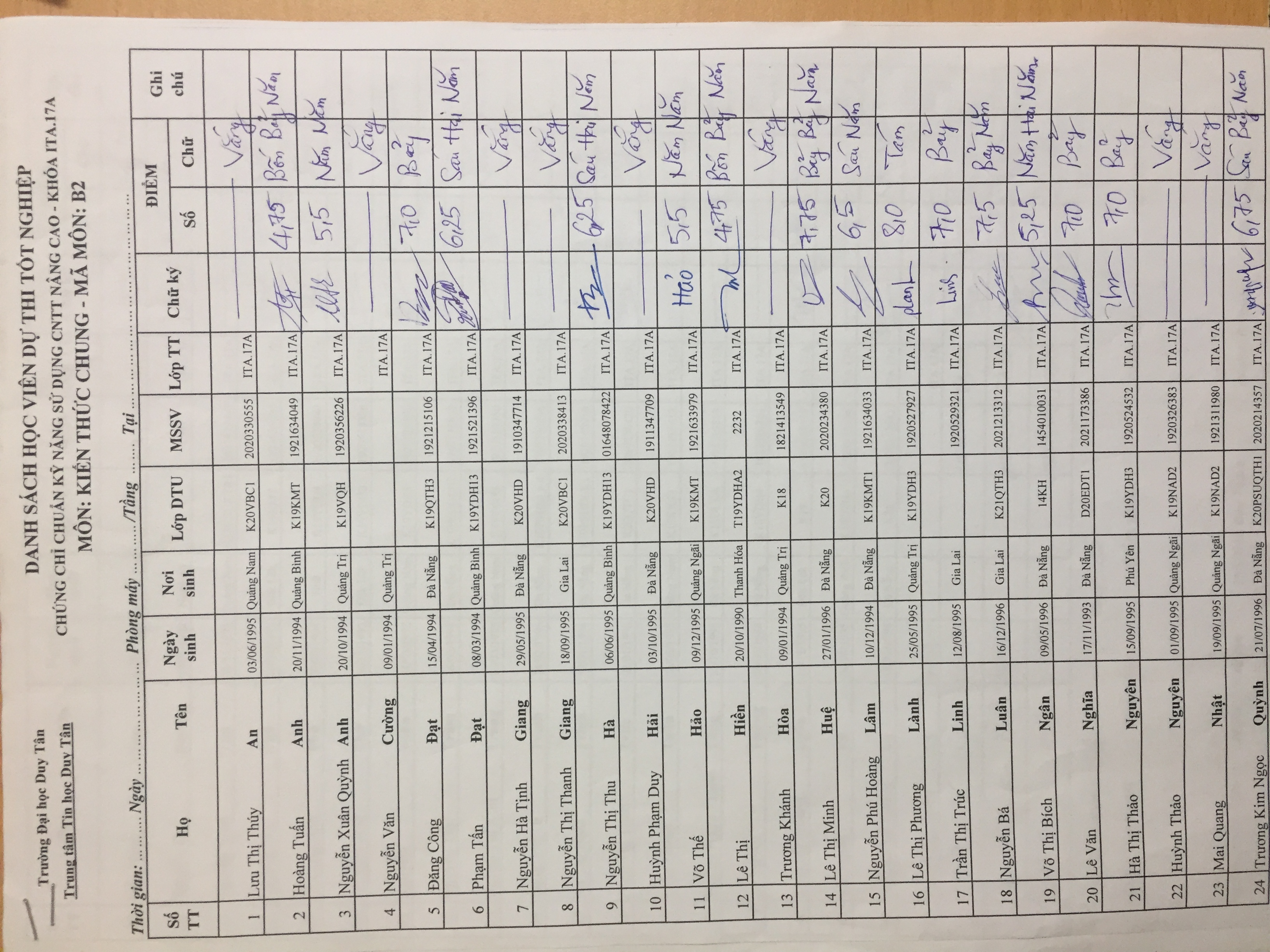 Điểm sát hạch Chứng chỉ Ứng dụng CNTT Nâng cao suất 15h00 ngày 25/01/2026