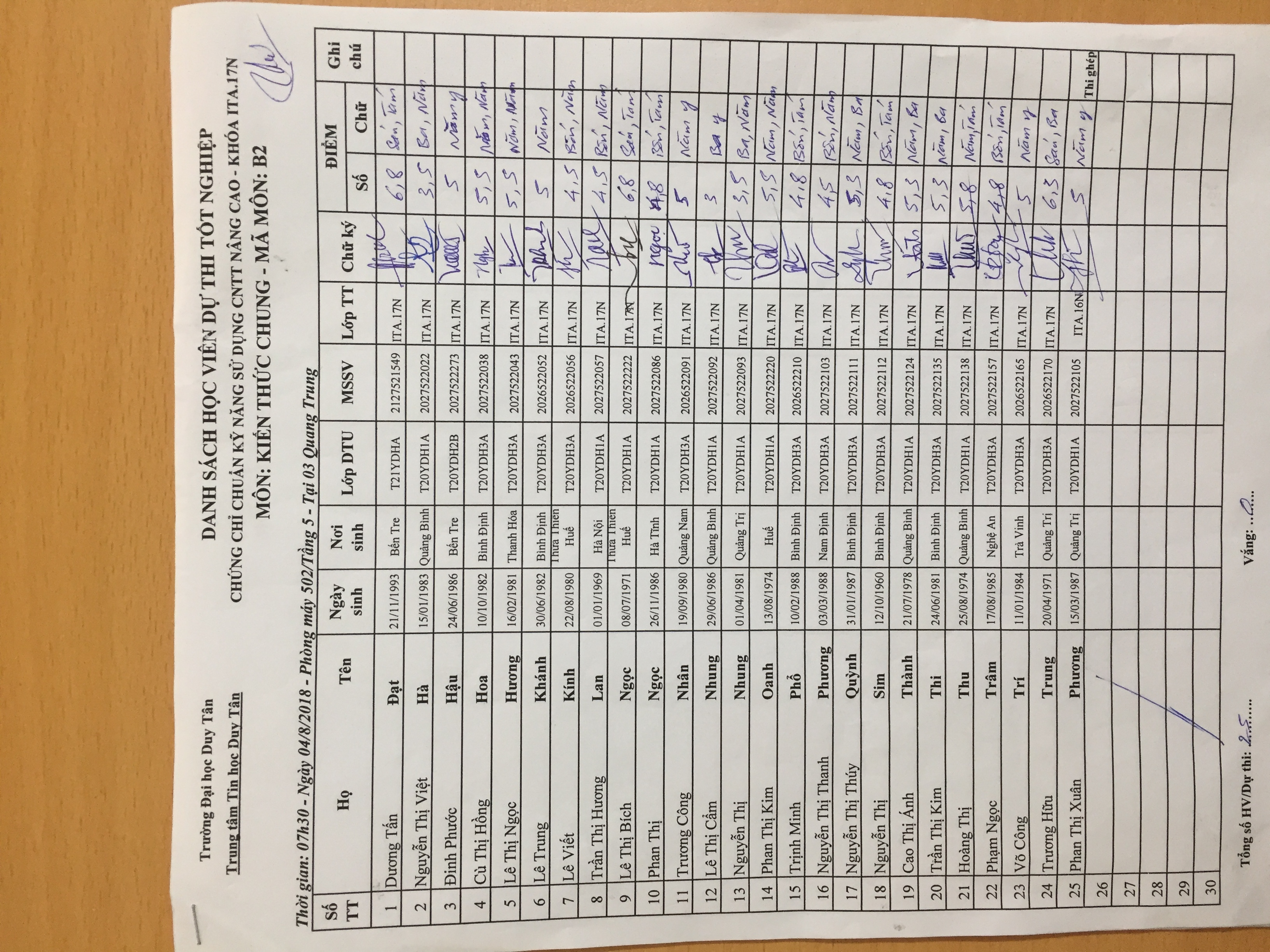 Danh sách thi