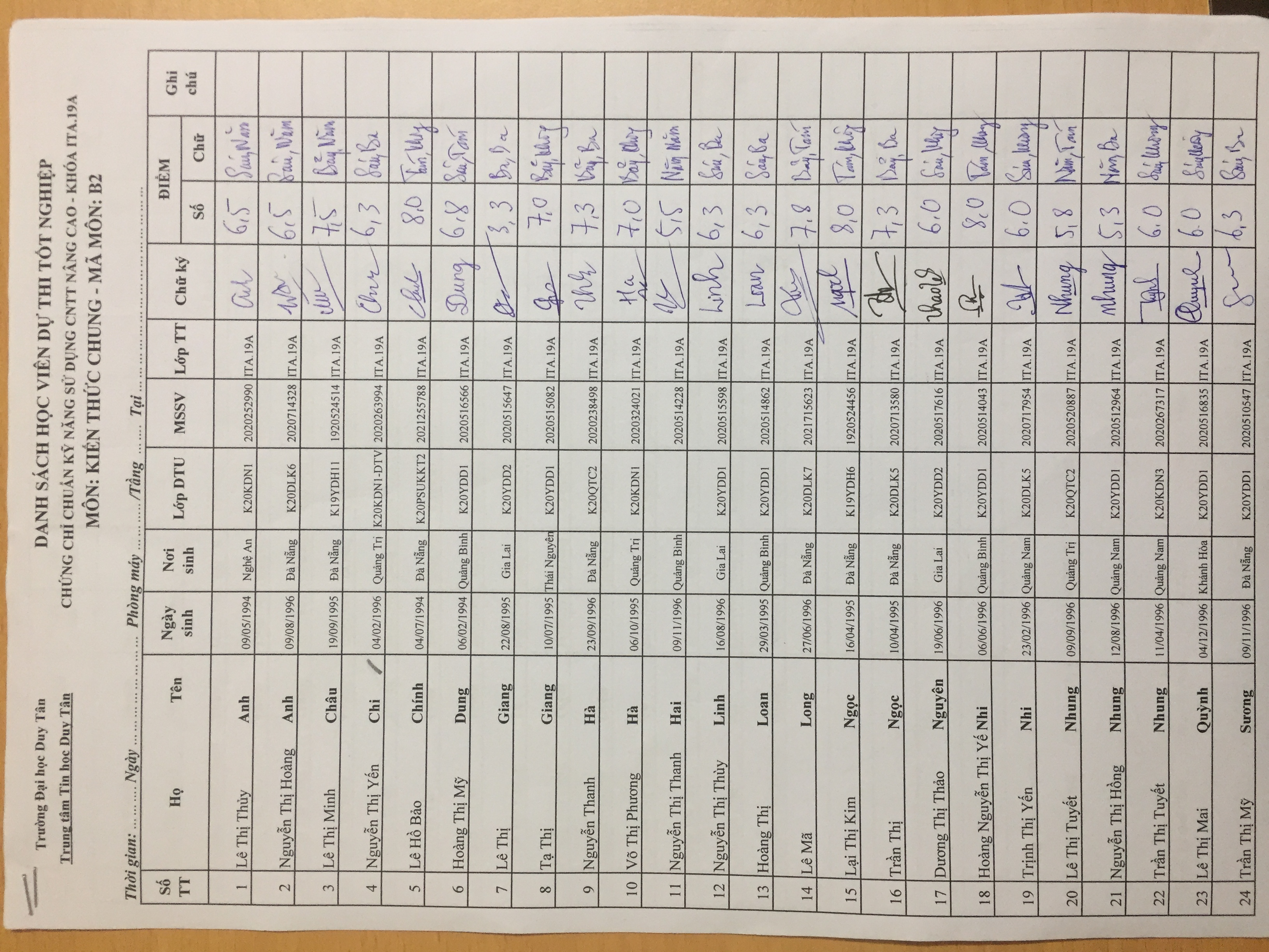 Điểm sát hạch Chứng chỉ Ứng dụng CNTT Nâng cao suất 15h00 ngày 25/01/2026
