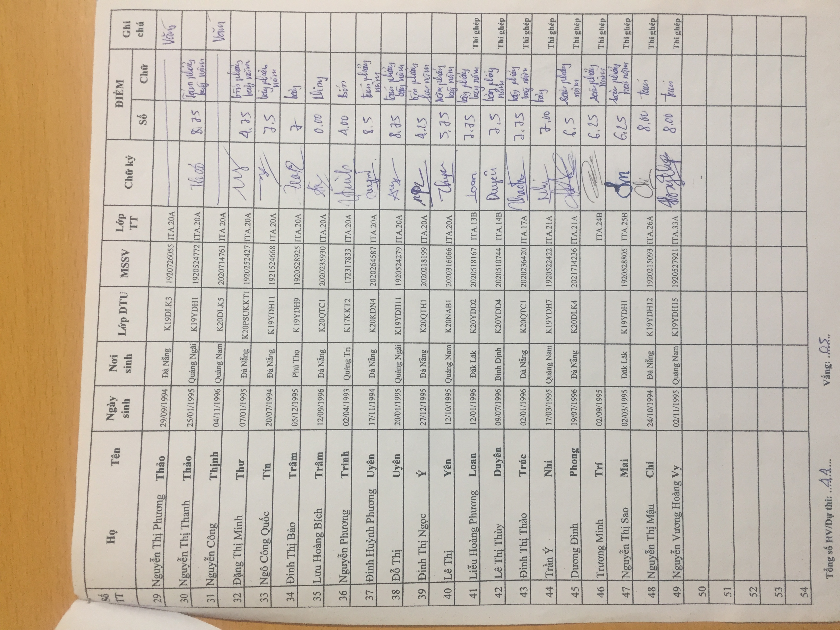 Danh sách thi