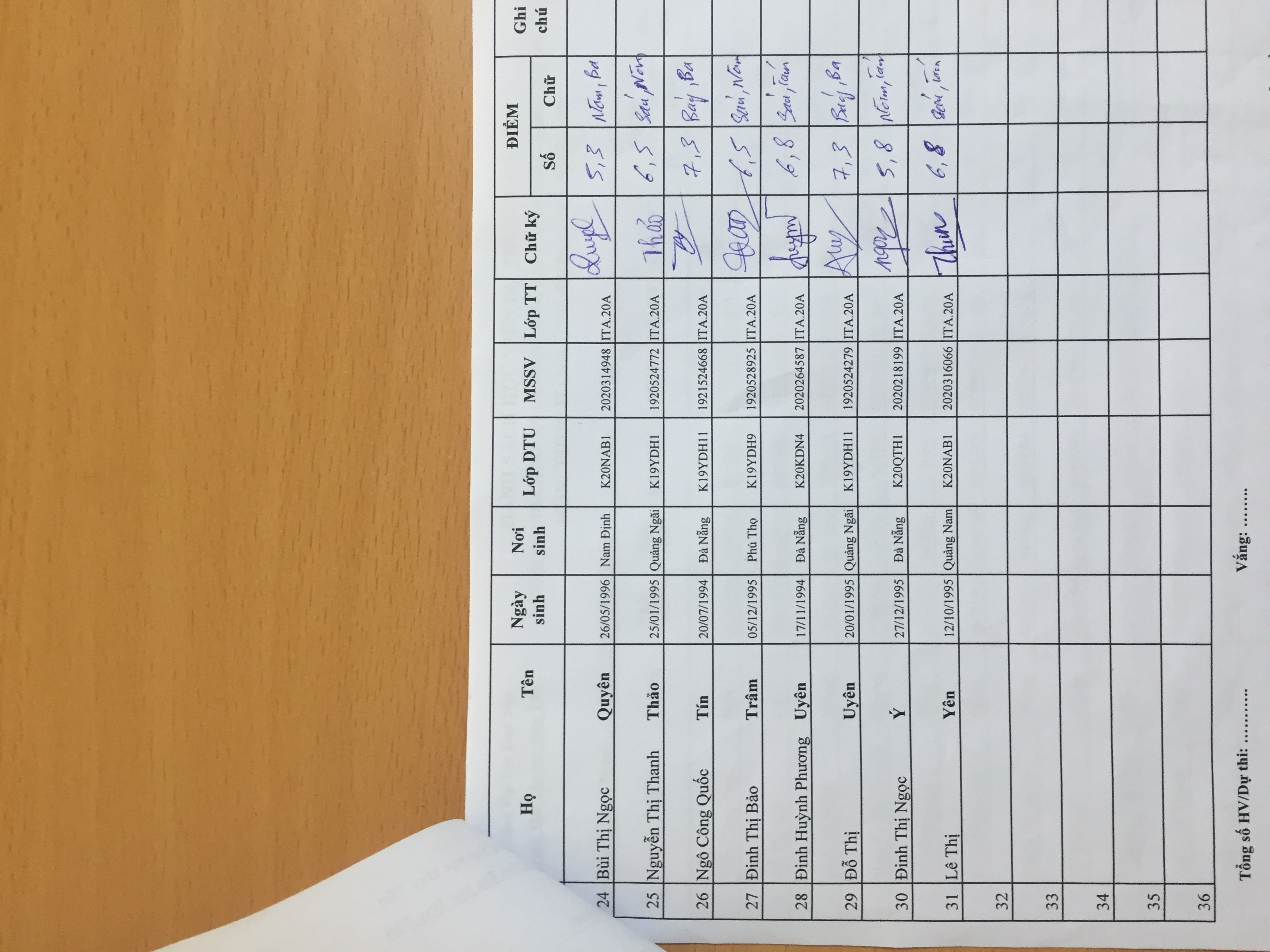 Danh sách thi