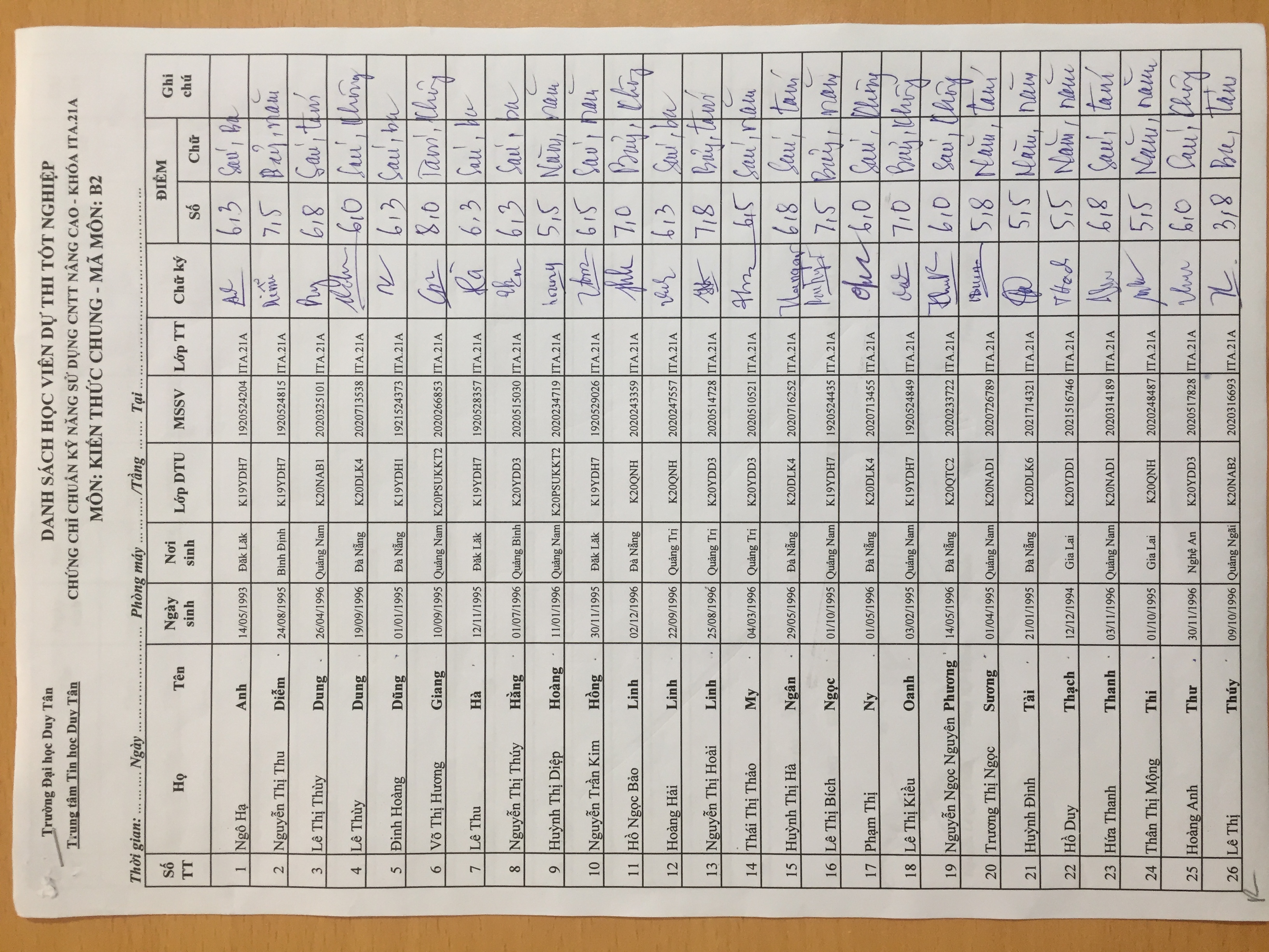 Điểm sát hạch Chứng chỉ Ứng dụng CNTT Nâng cao suất 15h00 ngày 25/01/2026