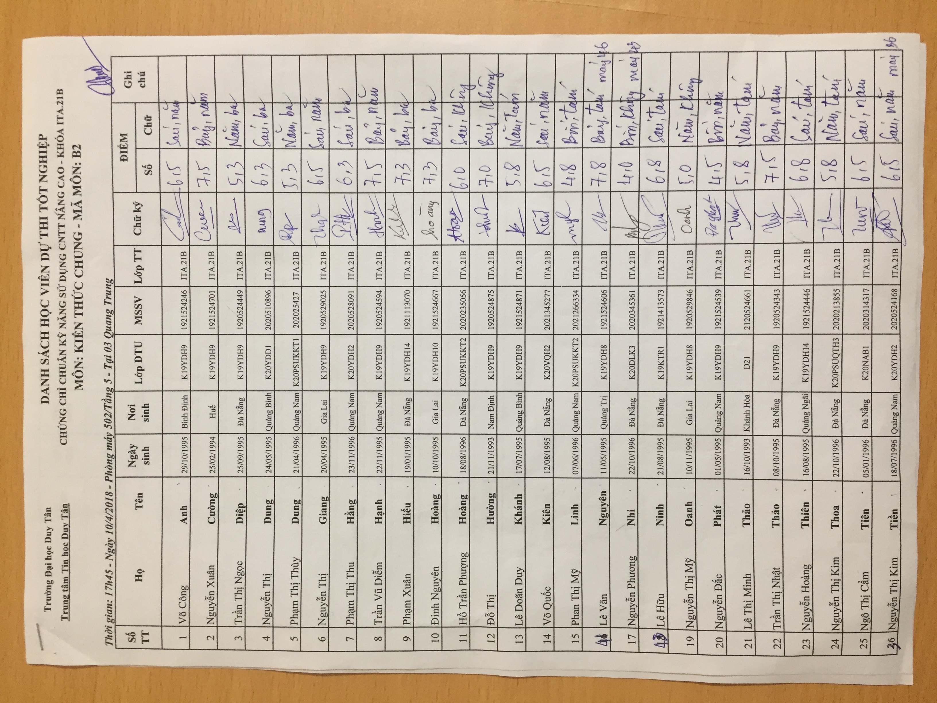 Điểm sát hạch Chứng chỉ Ứng dụng CNTT Nâng cao suất 15h00 ngày 25/01/2026
