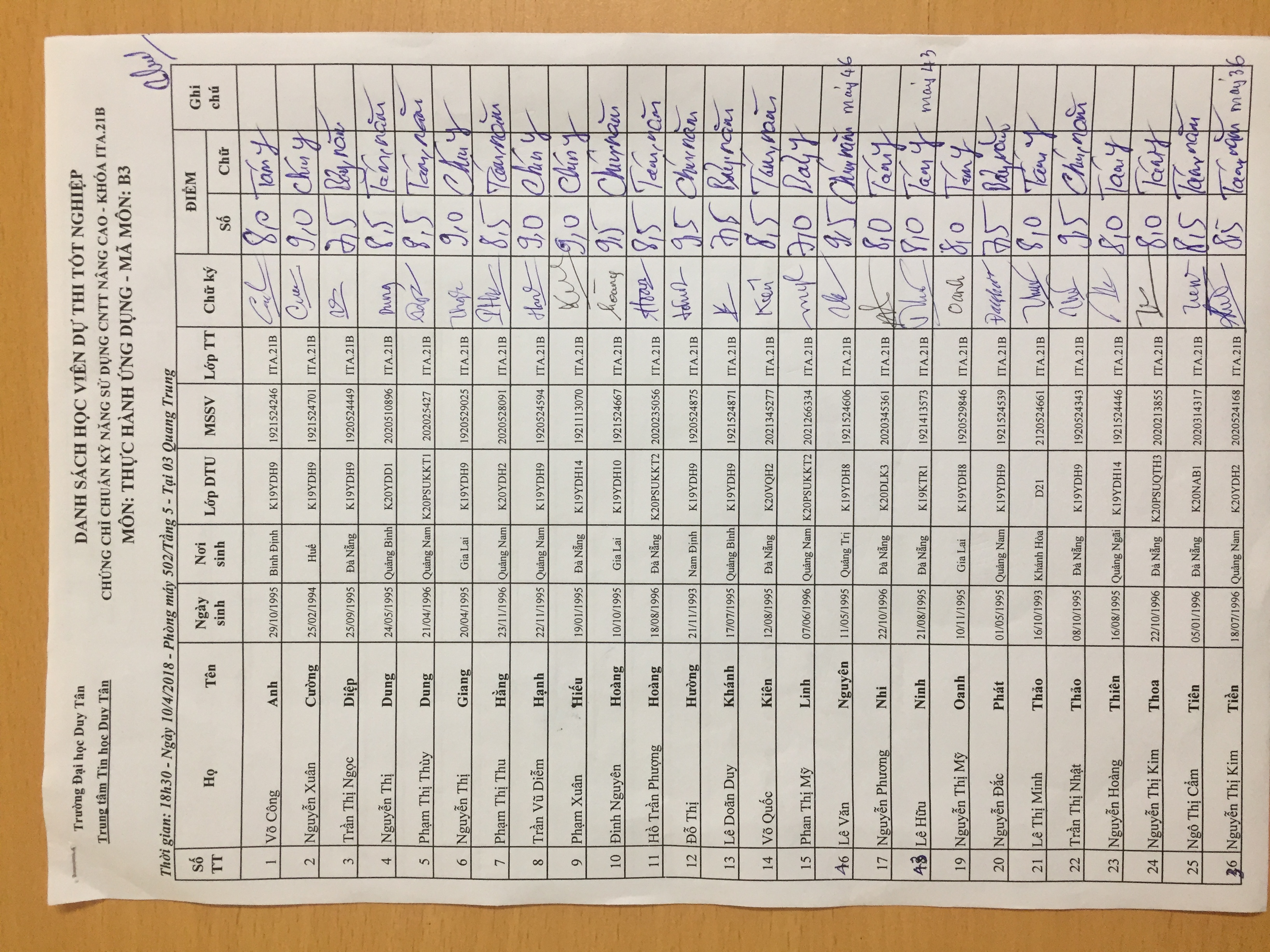 Điểm sát hạch Chứng chỉ Ứng dụng CNTT Nâng cao suất 15h00 ngày 25/01/2026