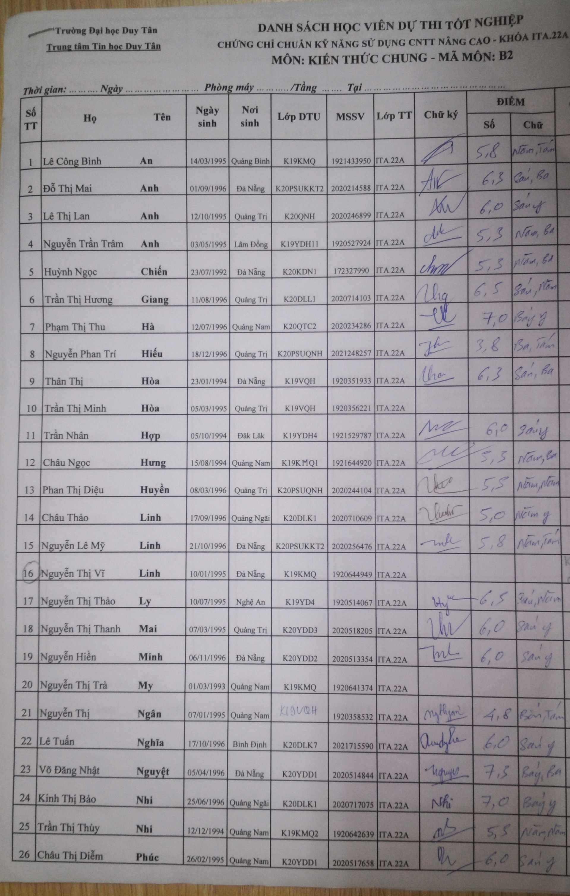 Điểm sát hạch Chứng chỉ Ứng dụng CNTT Nâng cao suất 15h00 ngày 25/01/2026