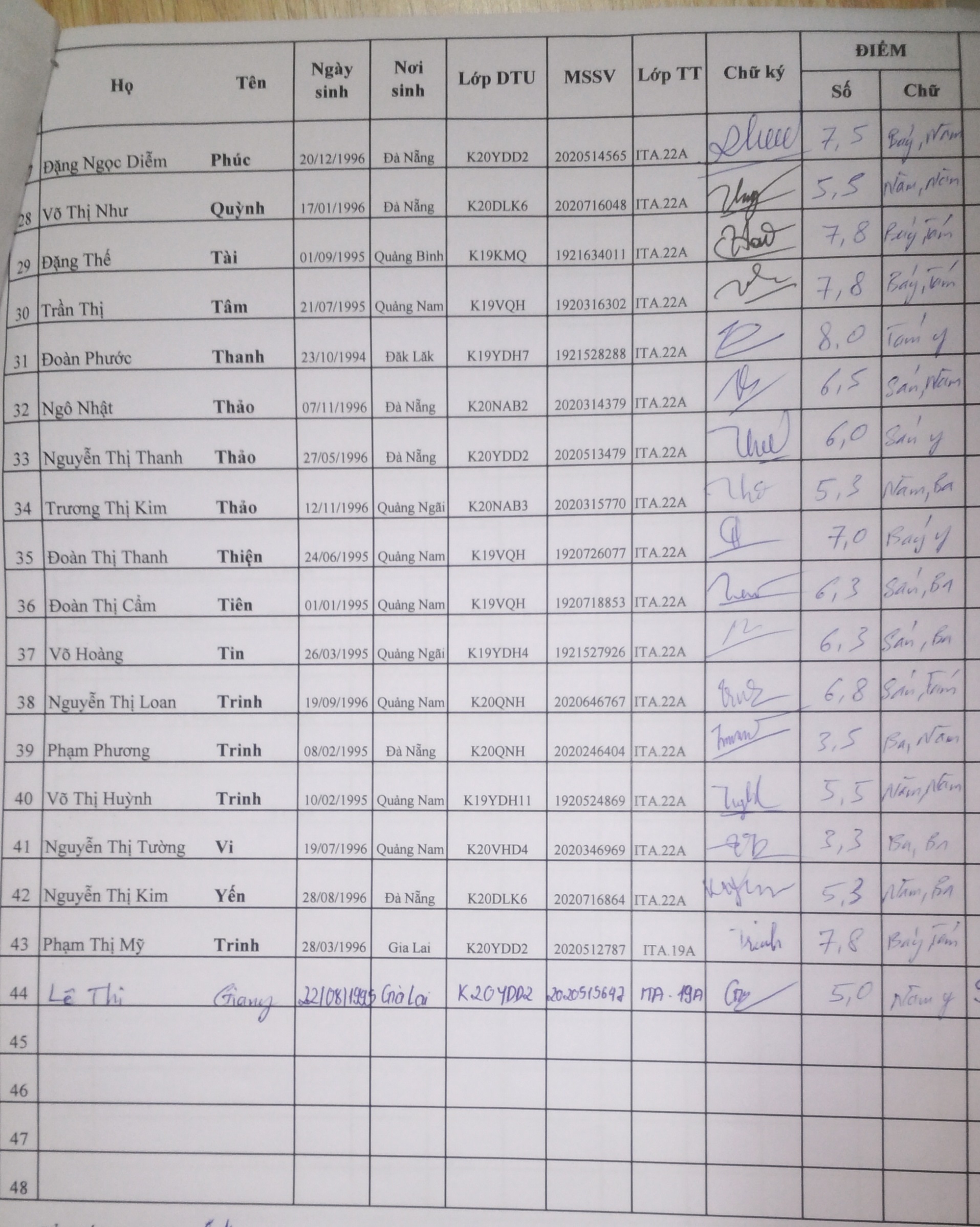 Danh sách thi