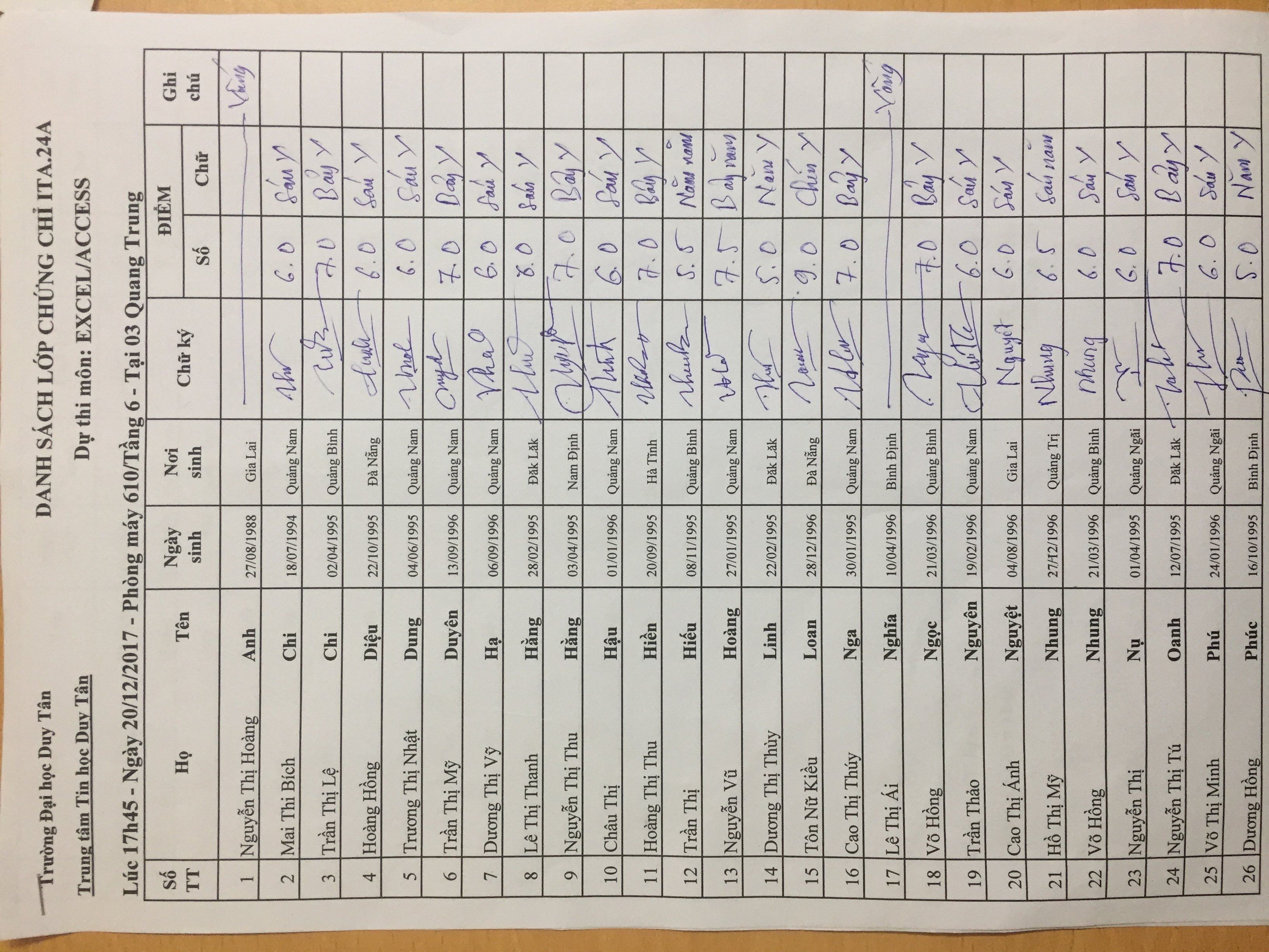 Điểm sát hạch Chứng chỉ Ứng dụng CNTT Nâng cao suất 17h45 ngày 25/01/2026