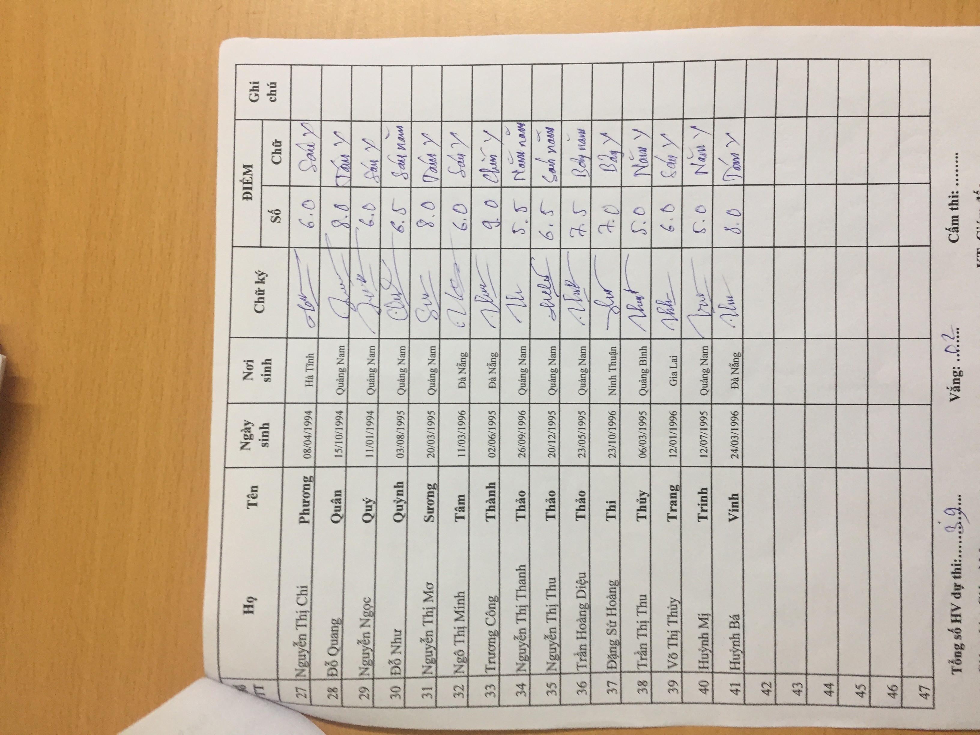 Danh sách thi