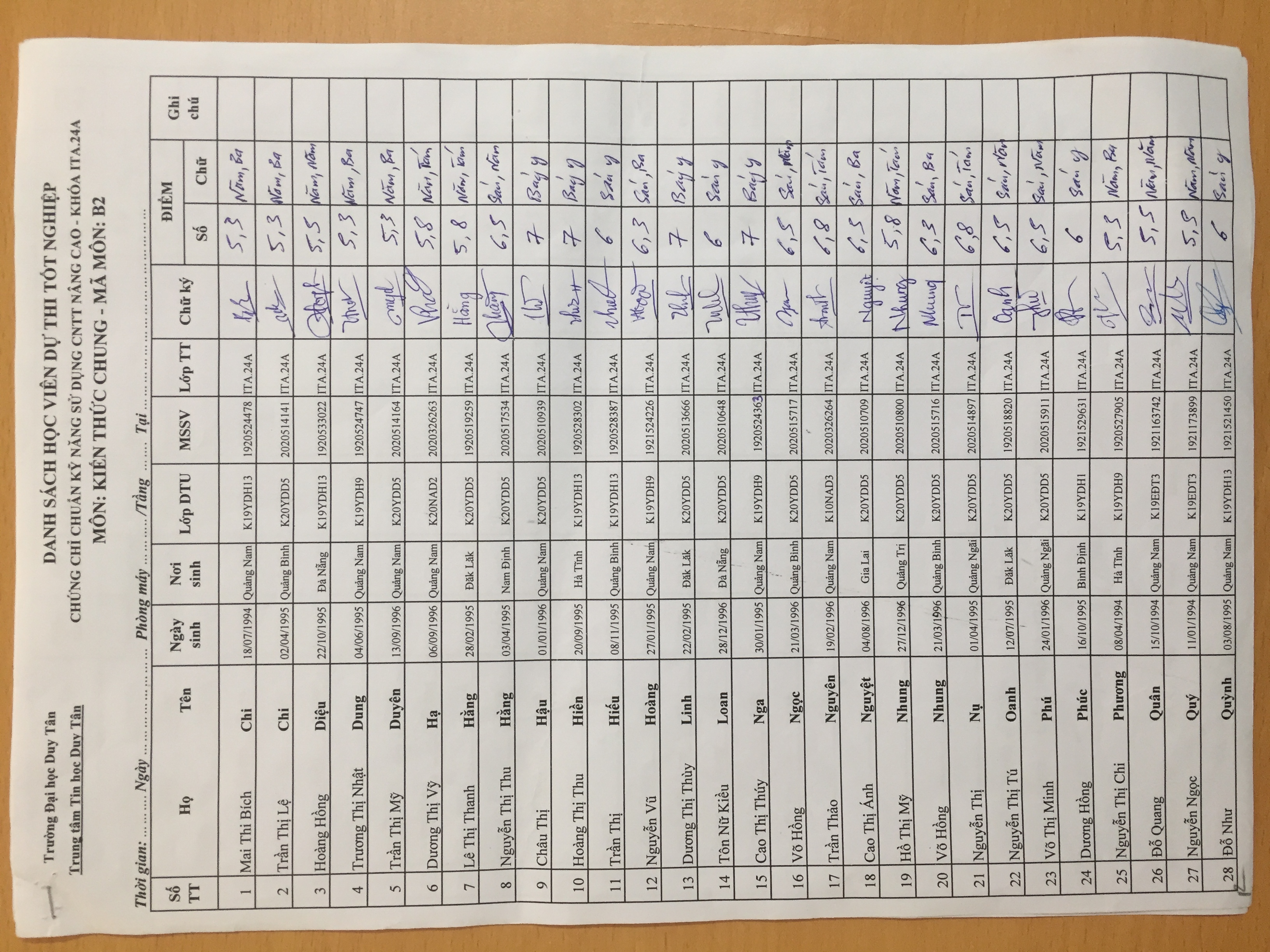 Điểm sát hạch Chứng chỉ Ứng dụng CNTT Nâng cao suất 15h00 ngày 25/01/2026