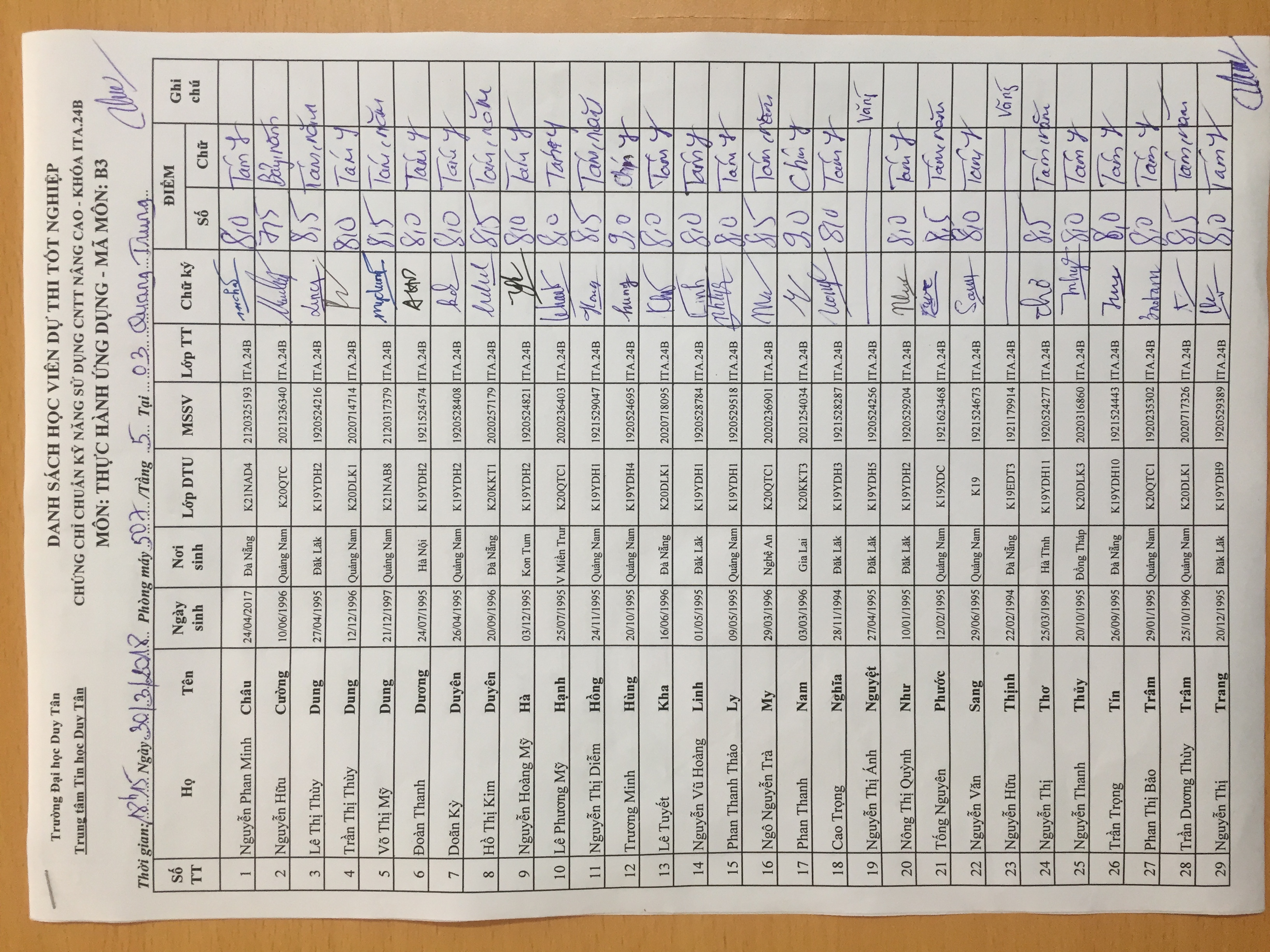Điểm sát hạch Chứng chỉ Ứng dụng CNTT Nâng cao suất 15h00 ngày 25/01/2026