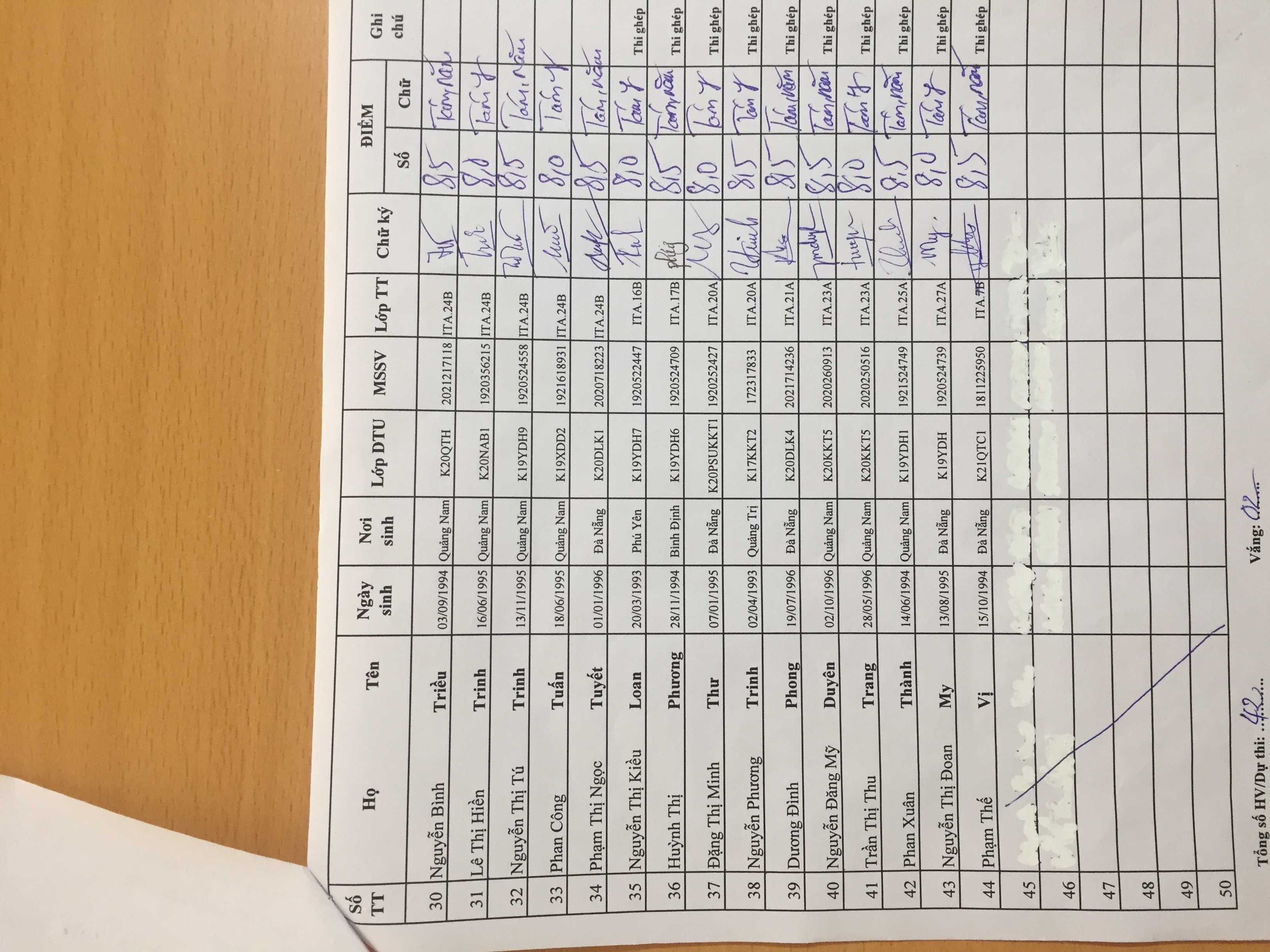 Danh sách thi