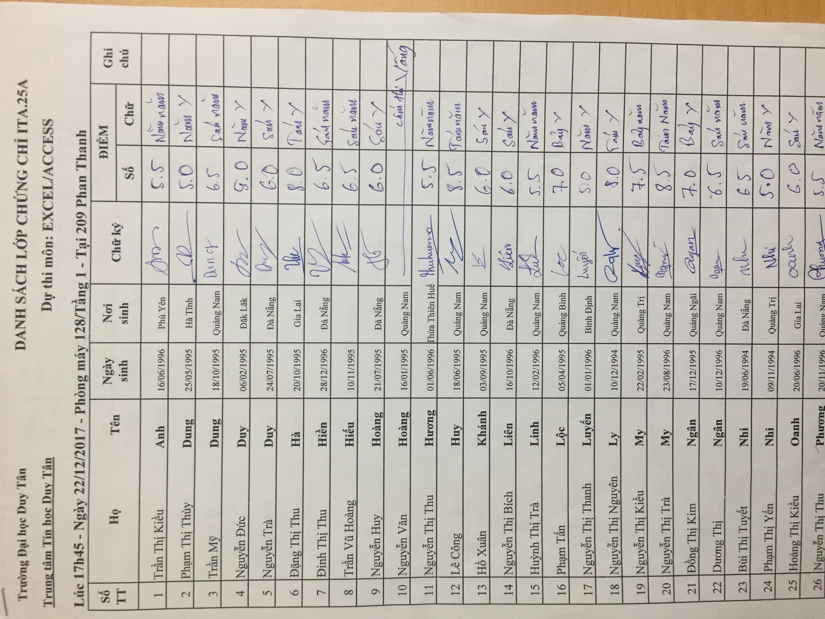 Điểm sát hạch Chứng chỉ Ứng dụng CNTT Nâng cao suất 17h45 ngày 25/01/2026