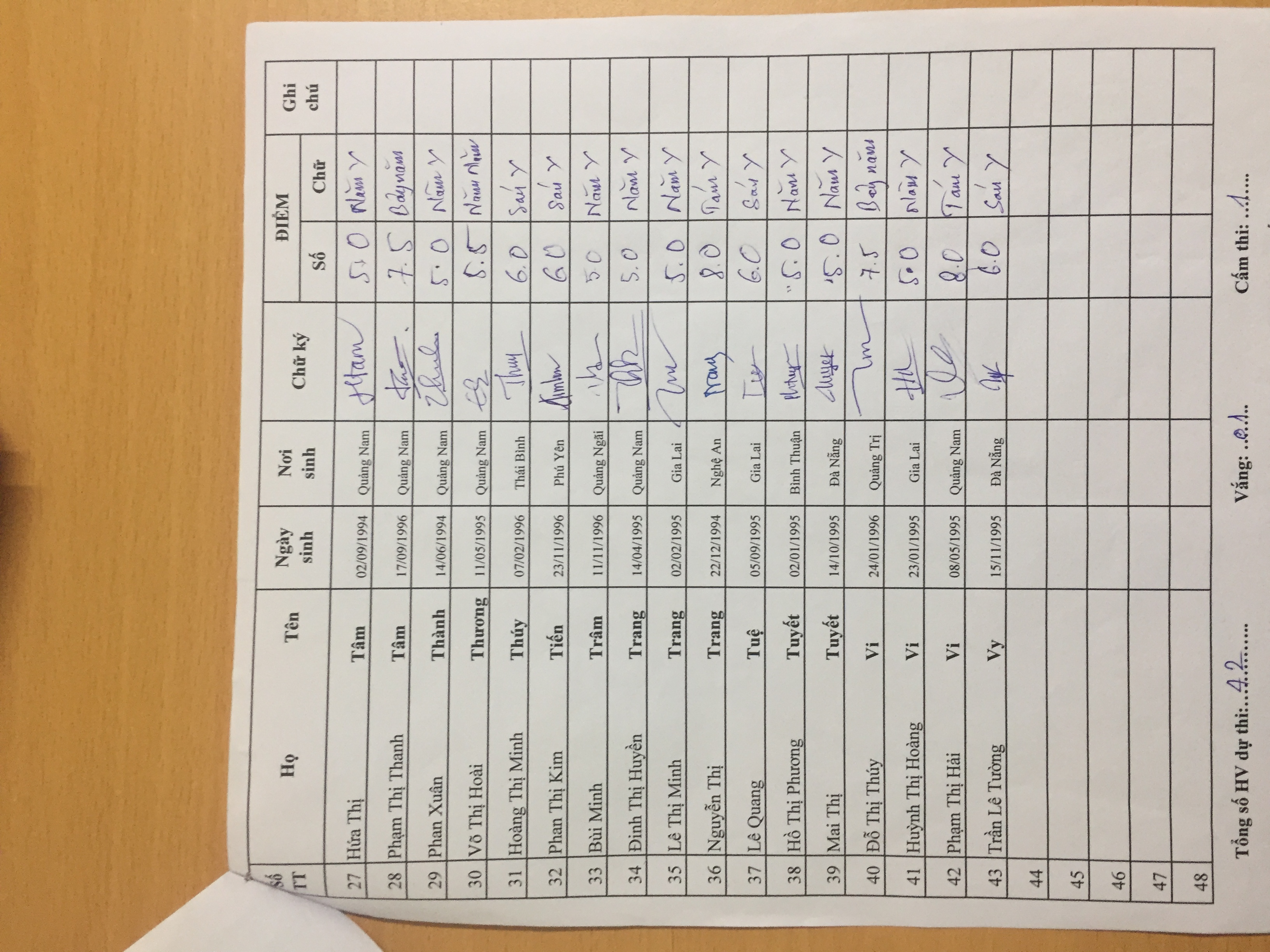 Danh sách thi