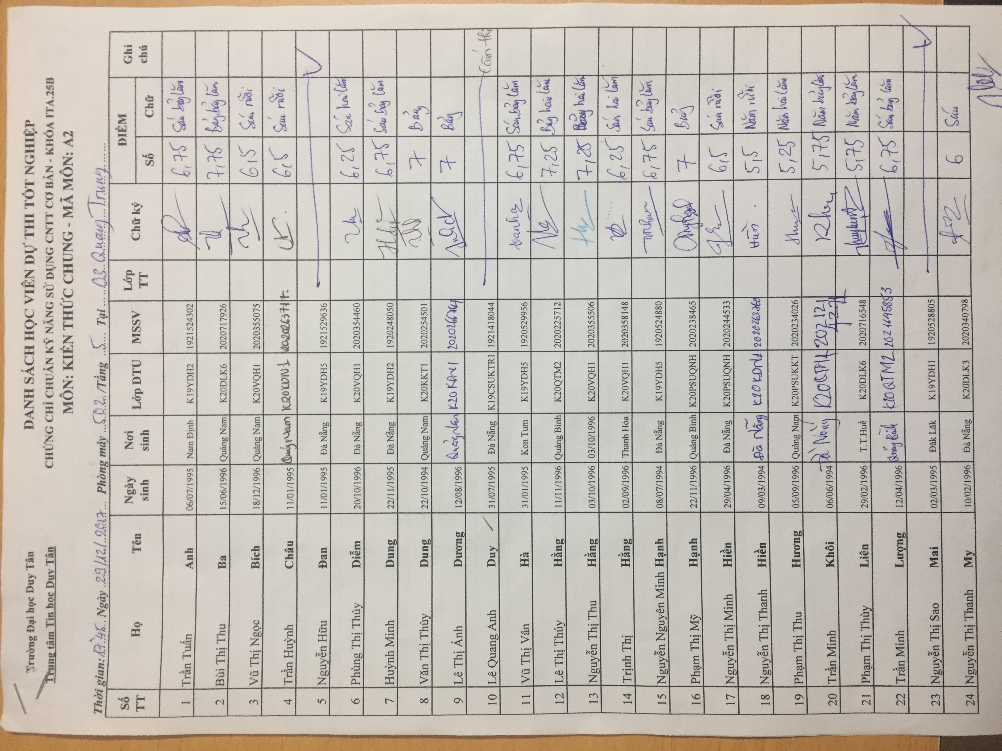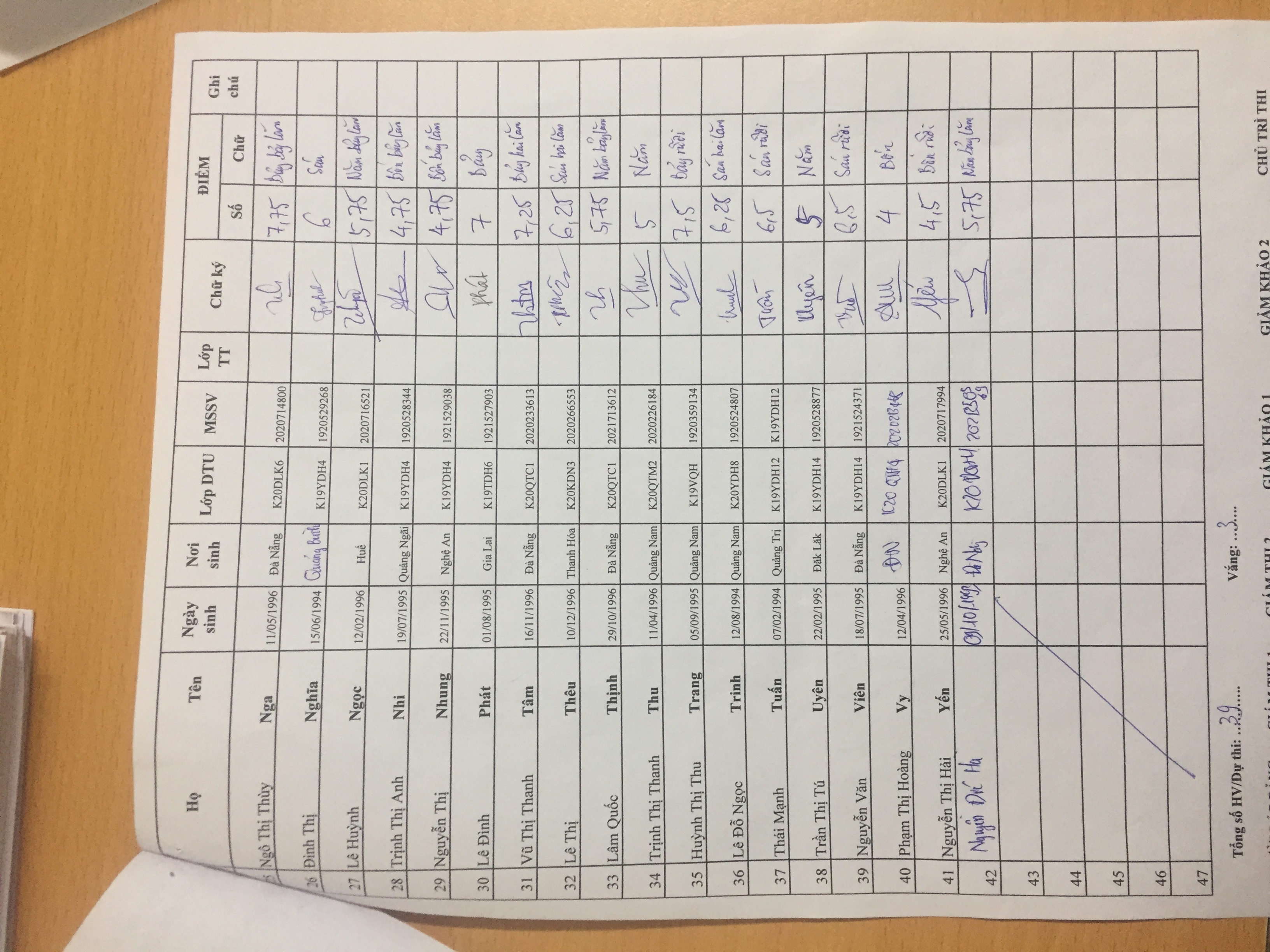 Danh sách thi
