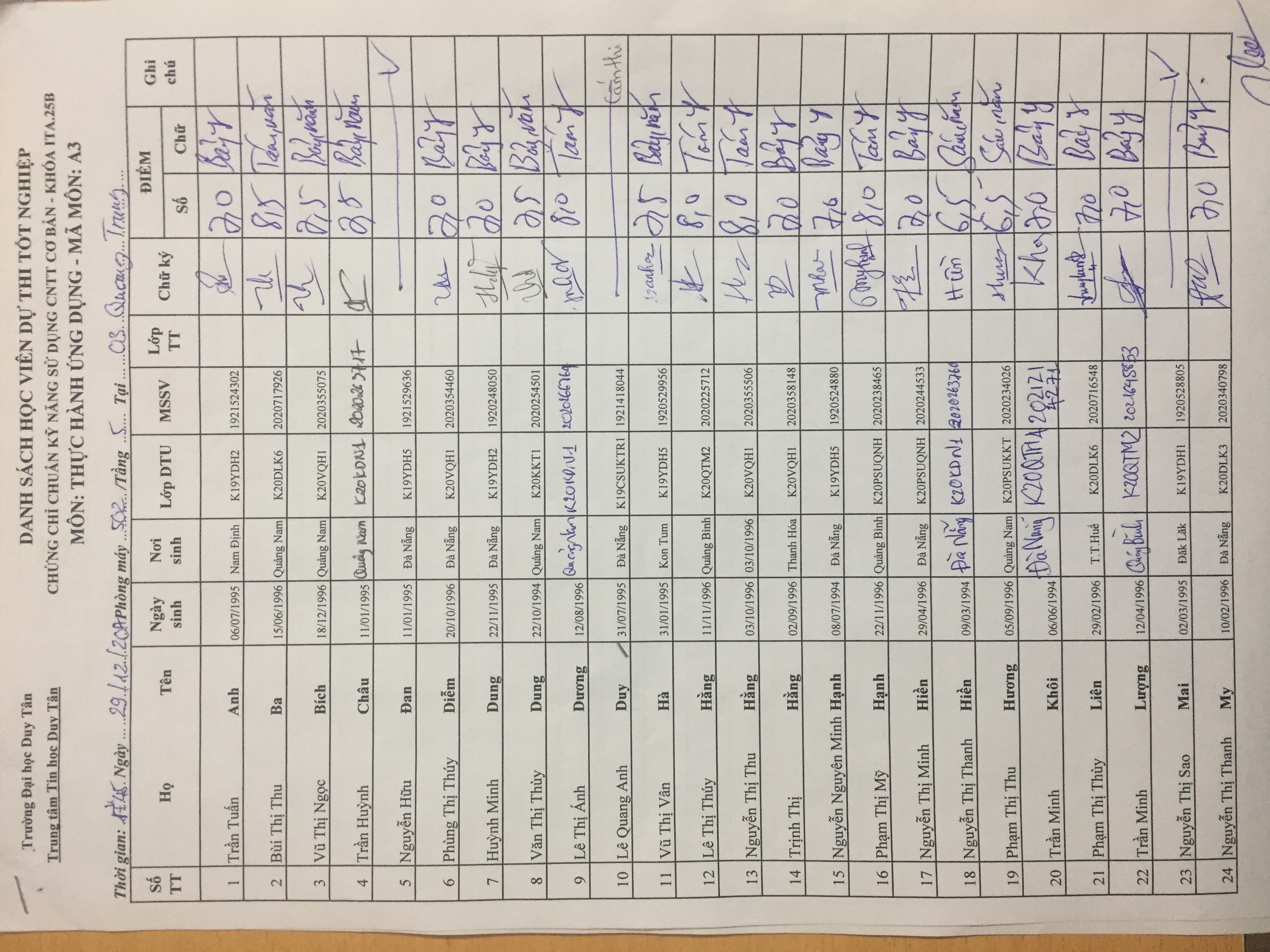 Điểm sát hạch Chứng chỉ Ứng dụng CNTT Nâng cao suất 15h00 ngày 25/01/2026