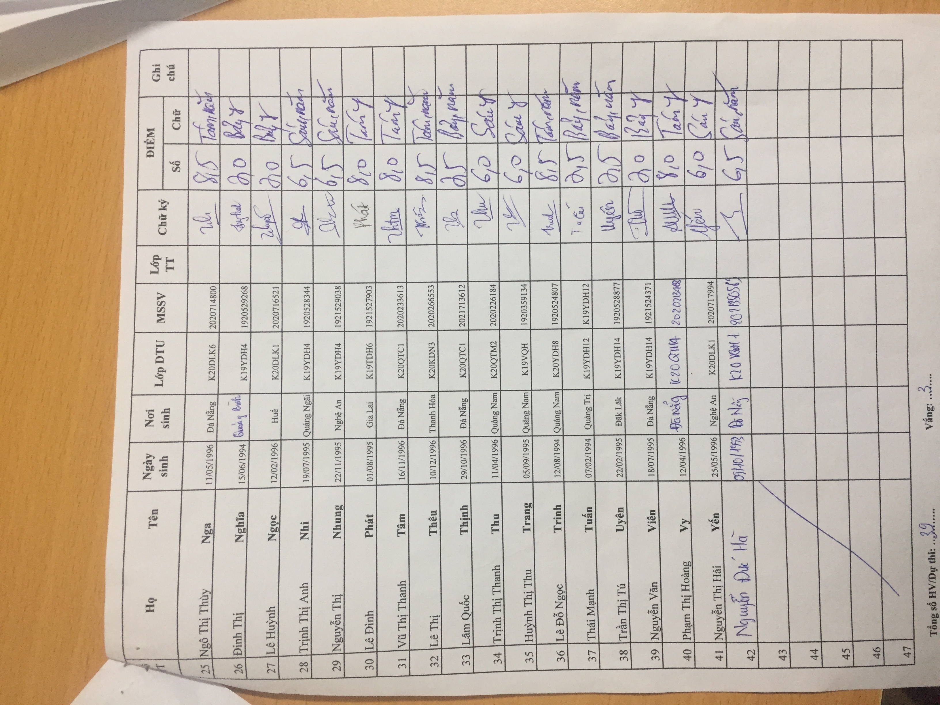 Danh sách thi