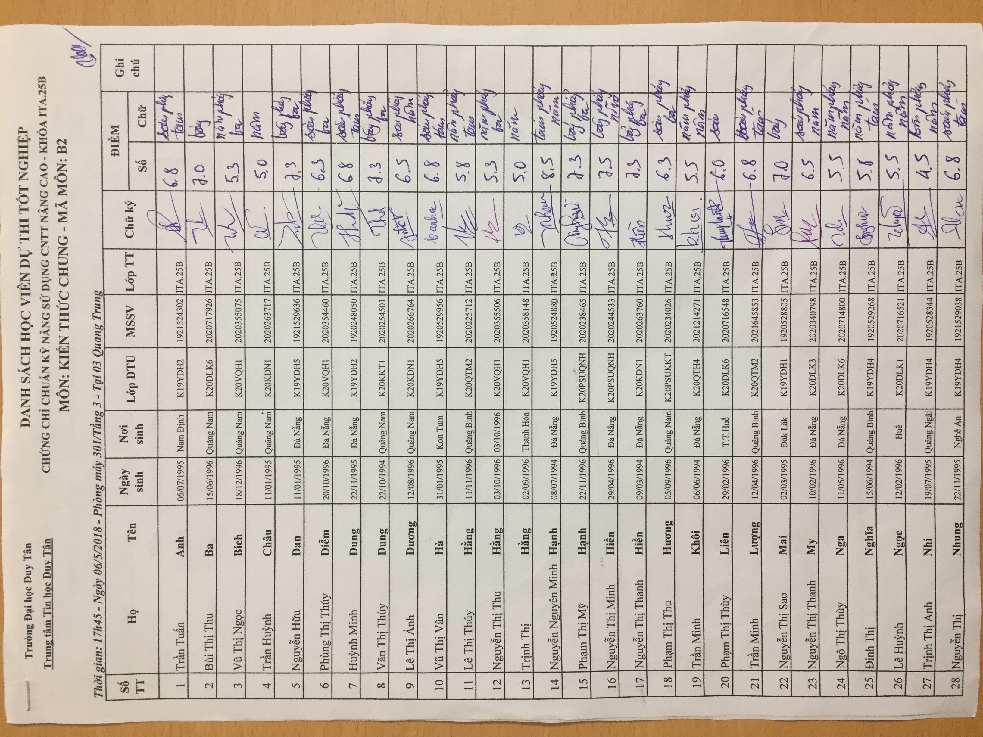 Điểm sát hạch Chứng chỉ Ứng dụng CNTT Nâng cao suất 17h45 ngày 25/01/2026