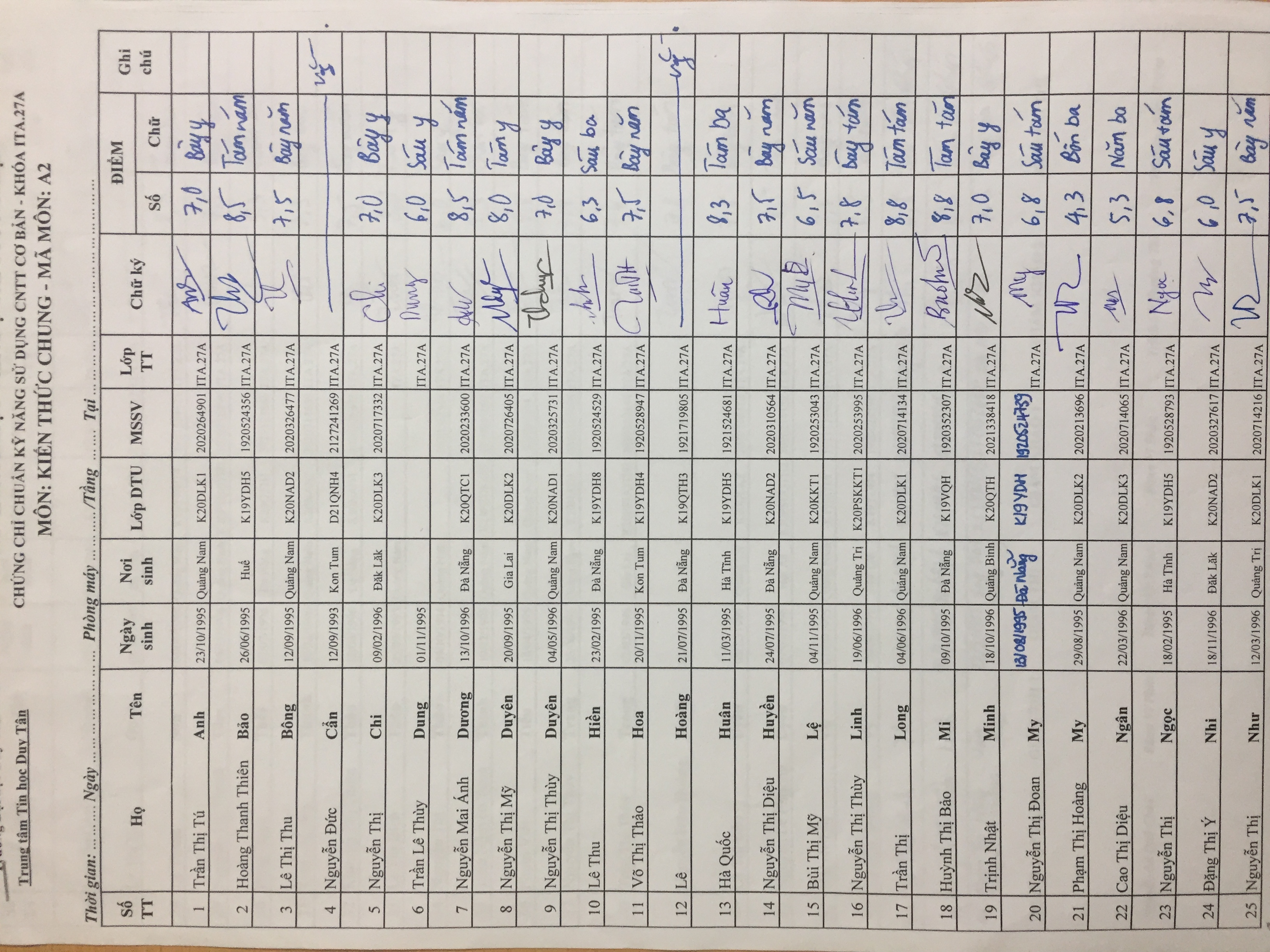 Điểm sát hạch Chứng chỉ Ứng dụng CNTT Nâng cao suất 17h45 ngày 25/01/2026