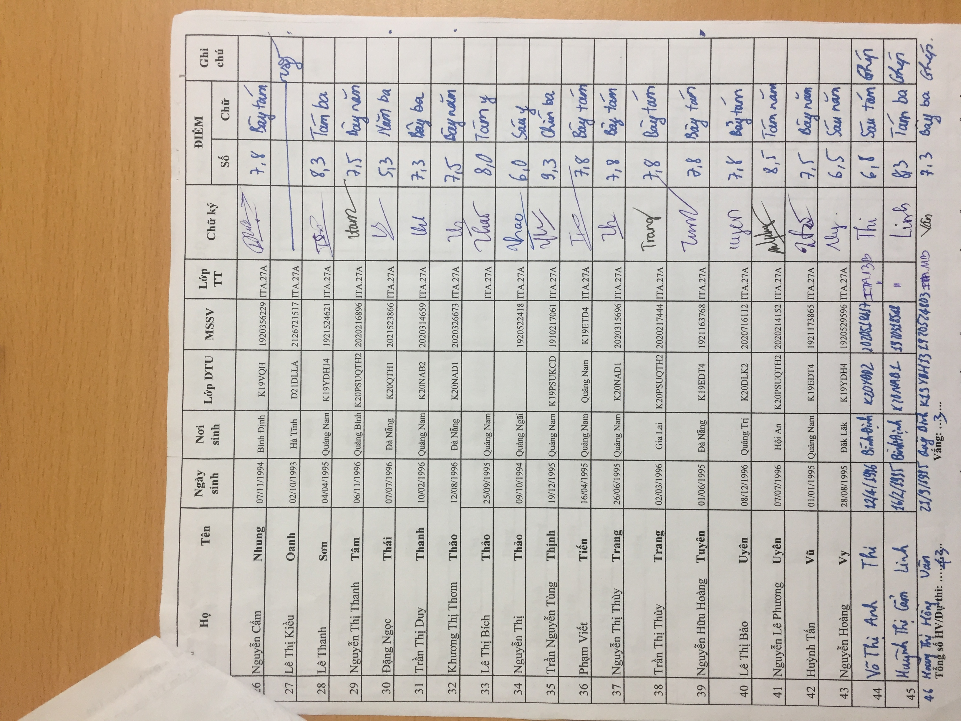 Danh sách thi