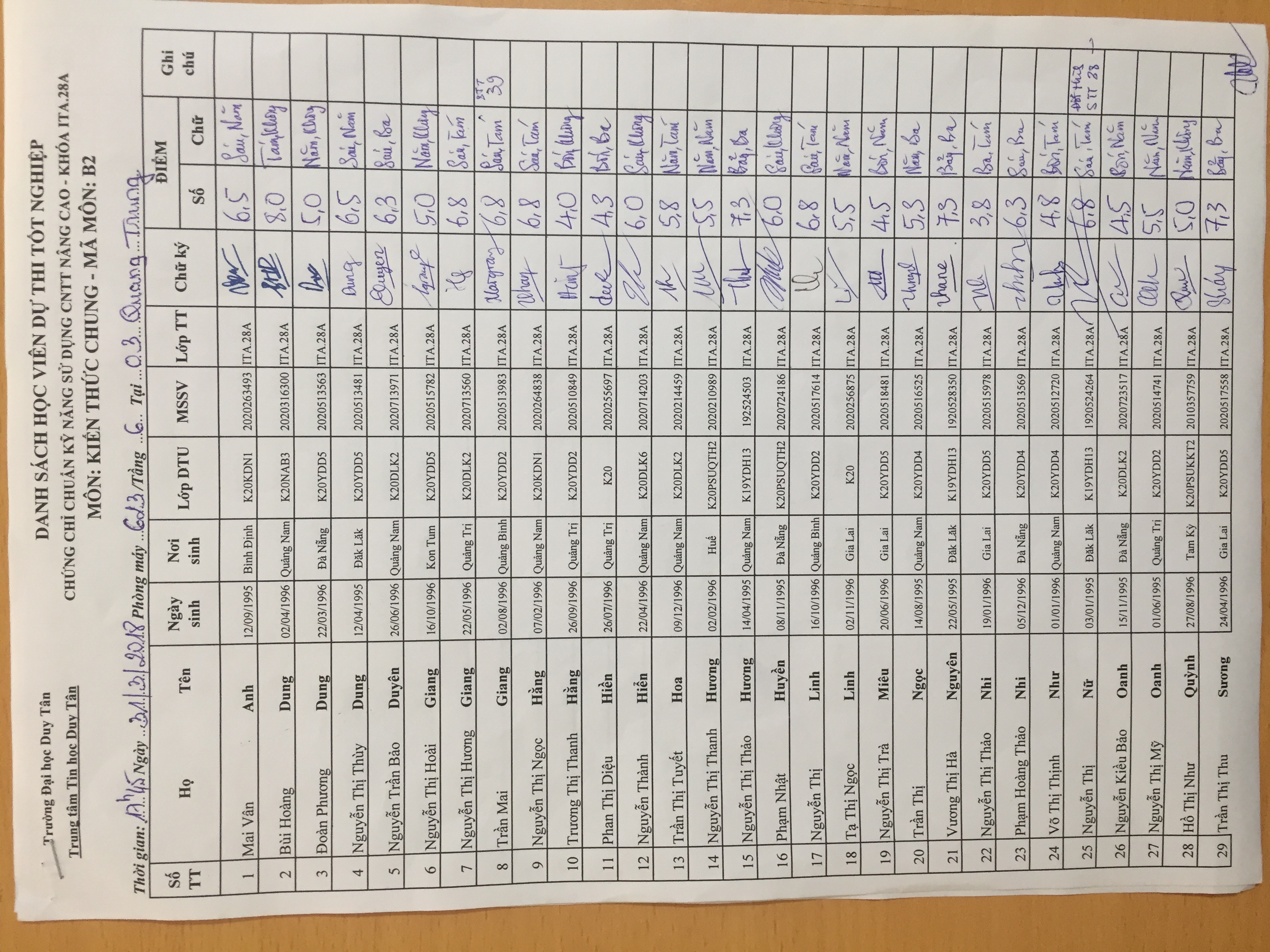 Điểm sát hạch Chứng chỉ Ứng dụng CNTT Nâng cao suất 15h00 ngày 25/01/2026