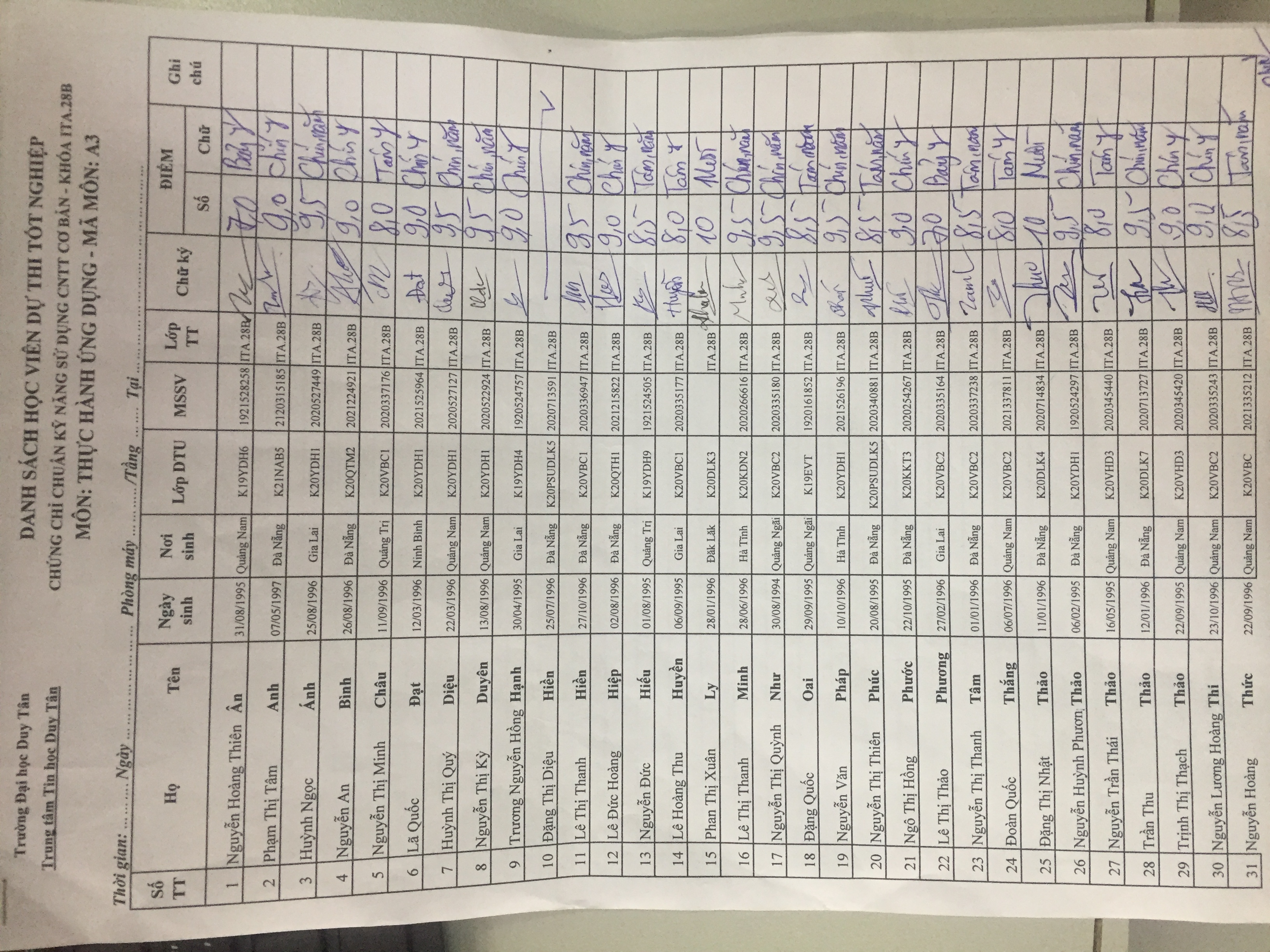 Điểm sát hạch Chứng chỉ Ứng dụng CNTT Nâng cao suất 15h00 ngày 25/01/2026