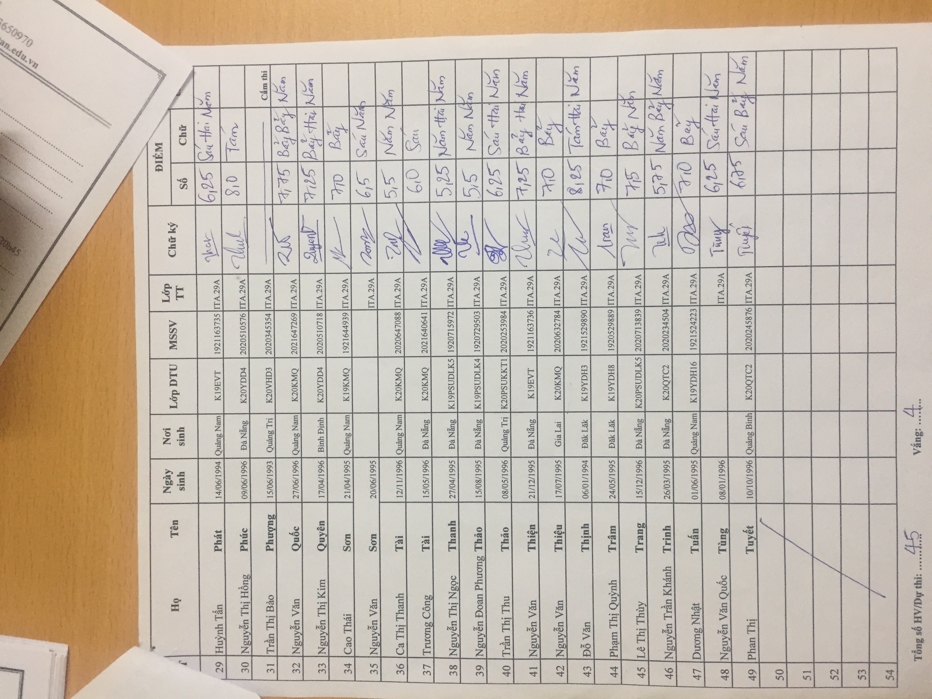 Danh sách thi