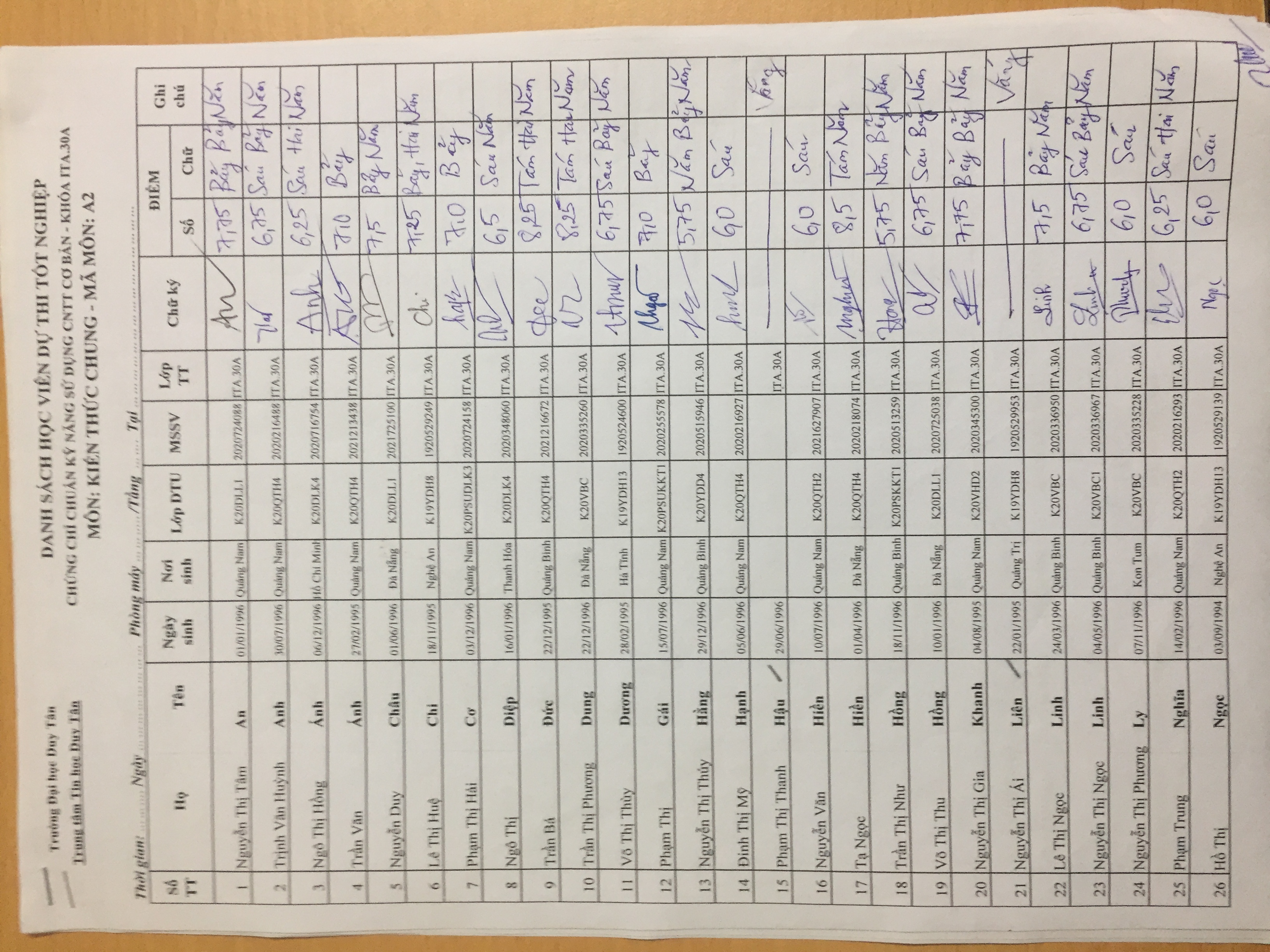 Điểm sát hạch Chứng chỉ Ứng dụng CNTT Nâng cao suất 15h00 ngày 25/01/2026