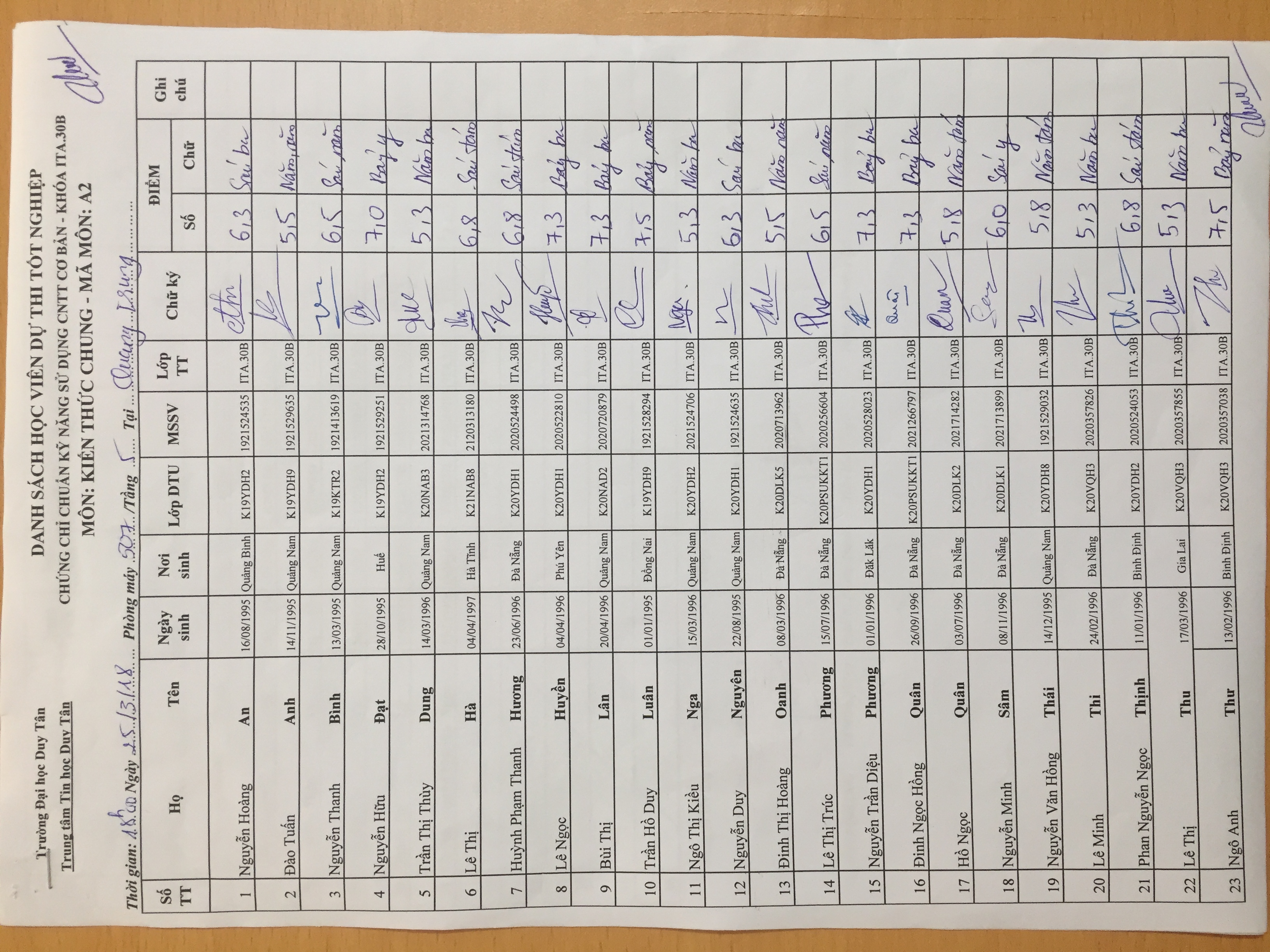 Điểm sát hạch Chứng chỉ Ứng dụng CNTT Nâng cao suất 17h45 ngày 25/01/2026