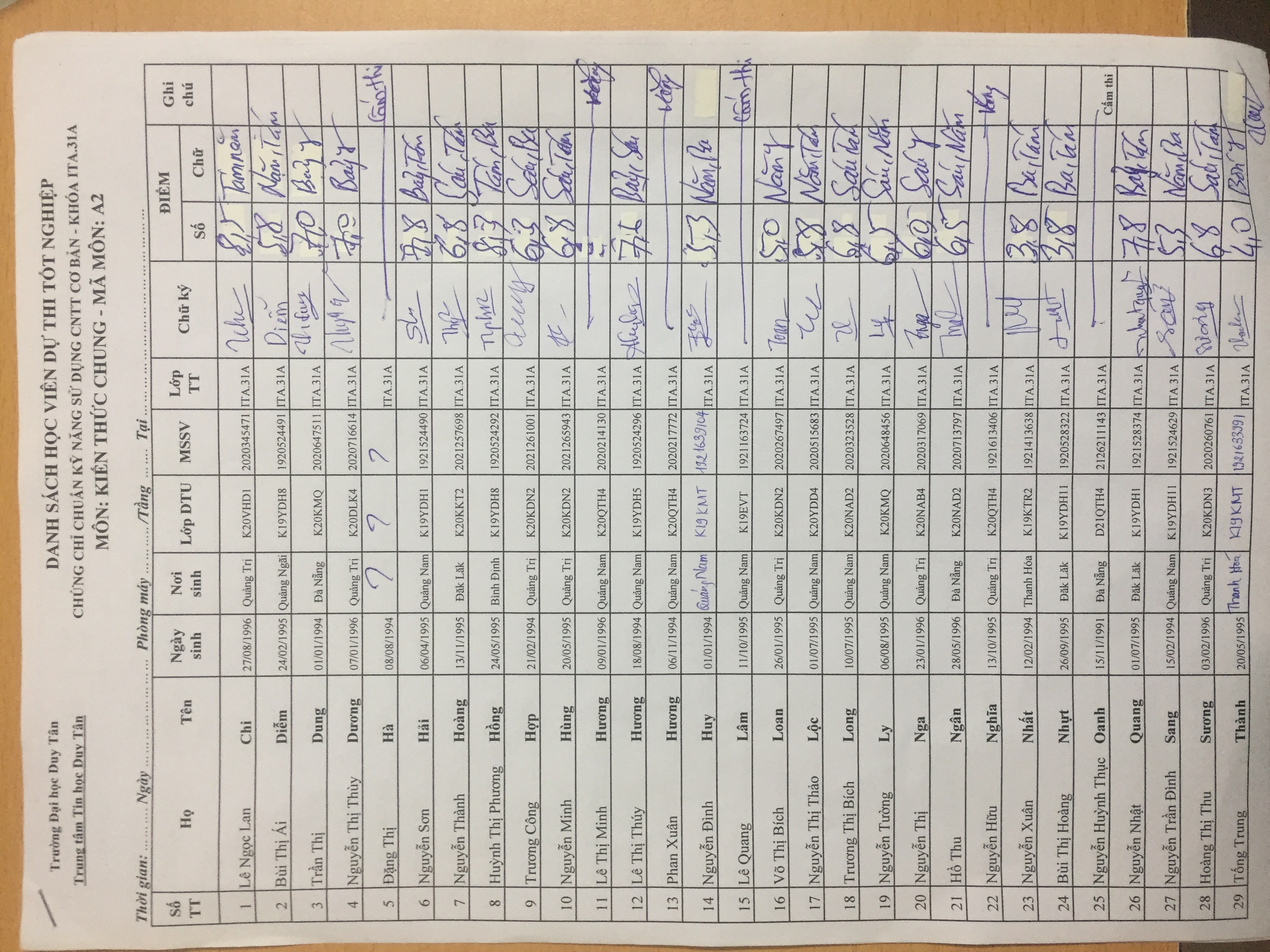 • Danh sách thi
