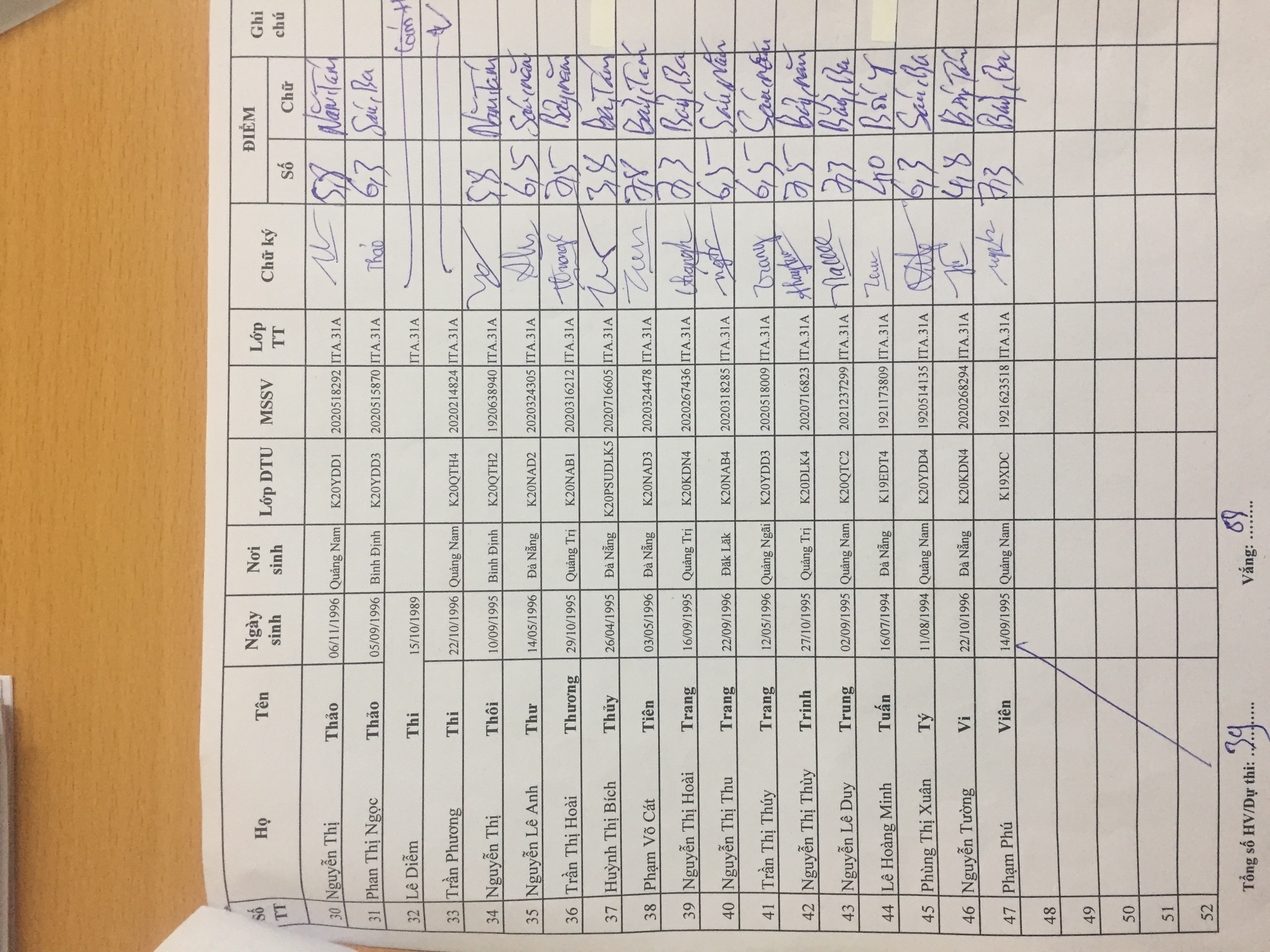 • Điểm thi