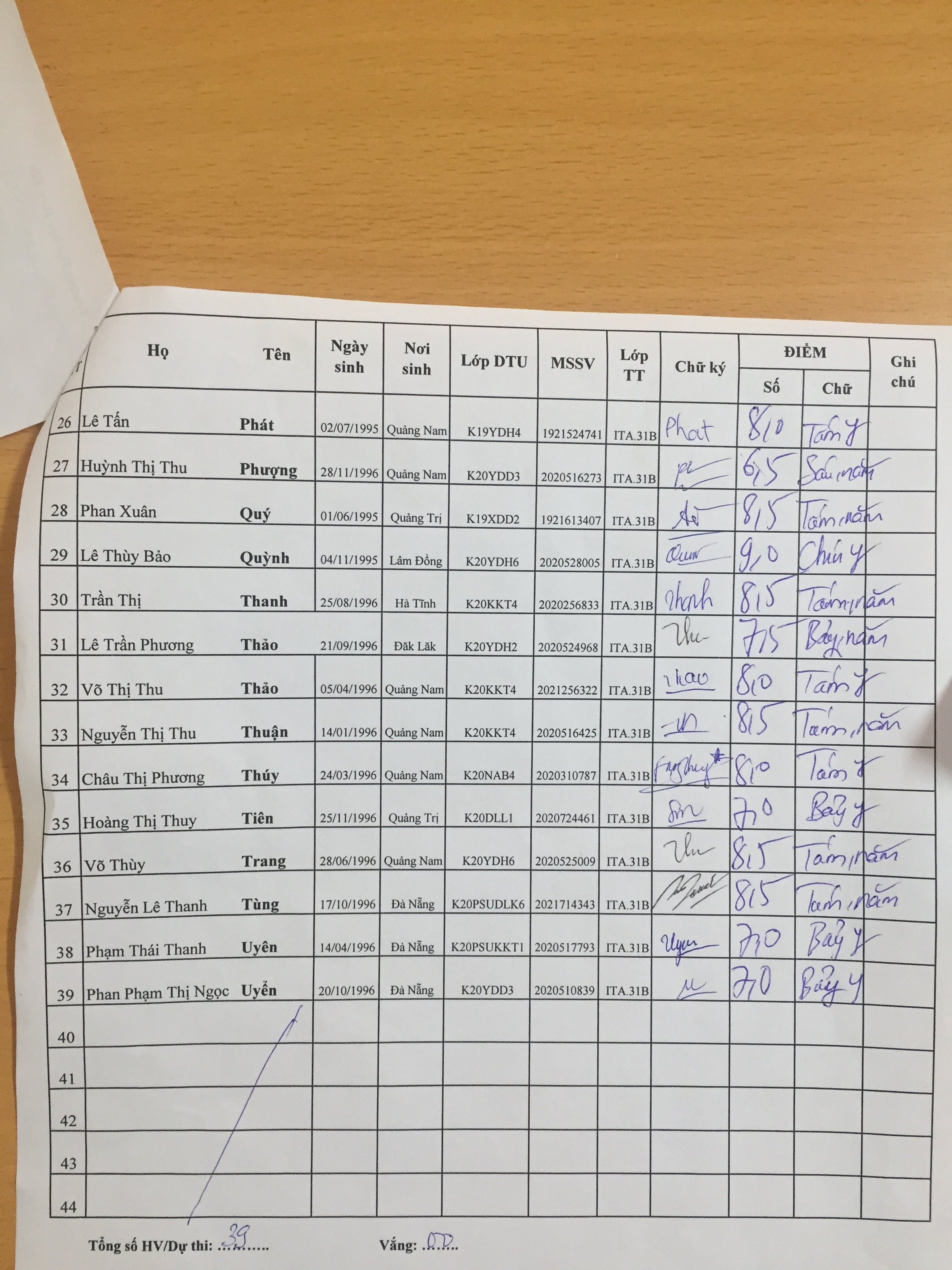 Danh sách thi