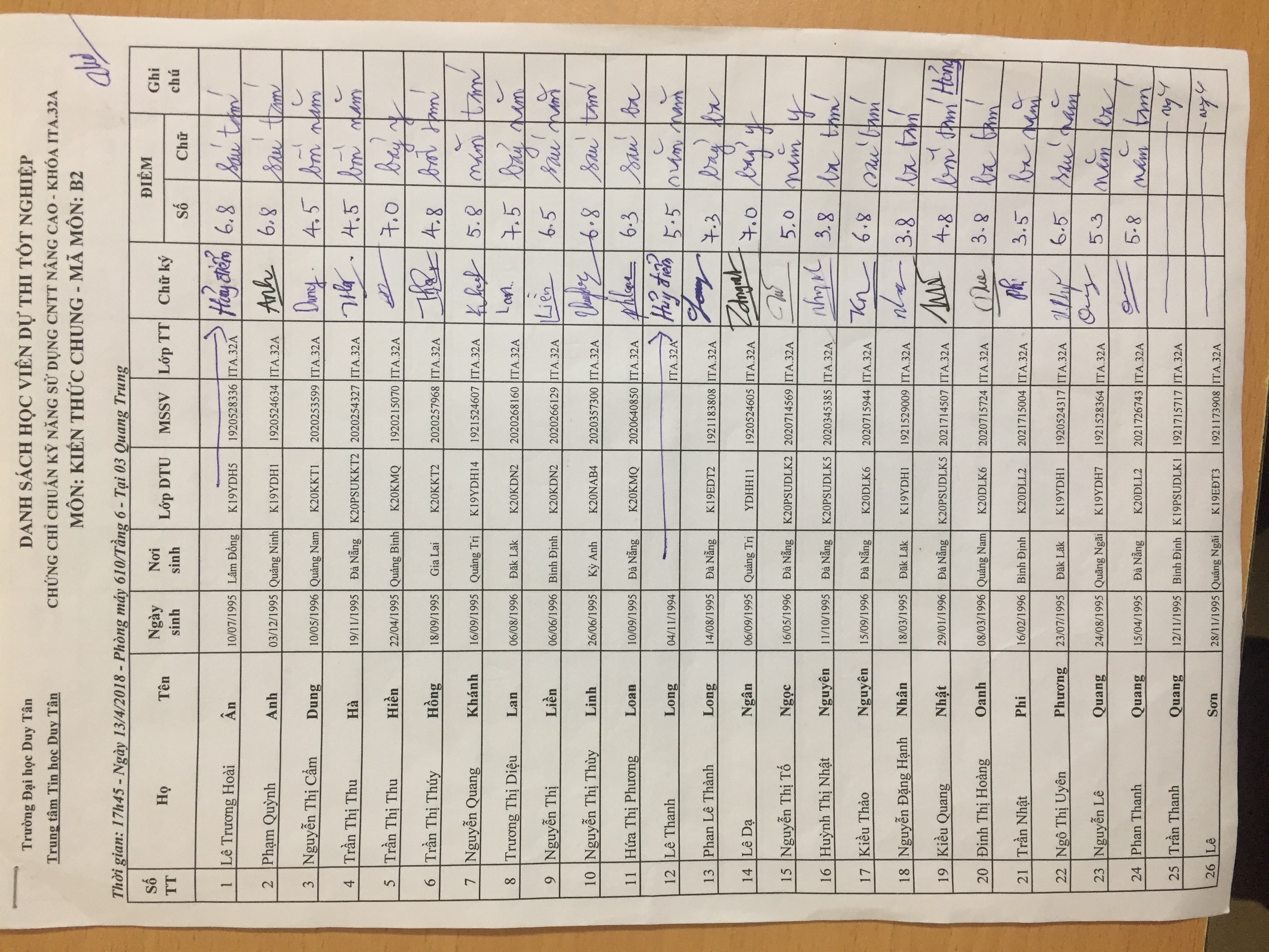 Điểm sát hạch Chứng chỉ Ứng dụng CNTT Nâng cao suất 15h00 ngày 25/01/2026