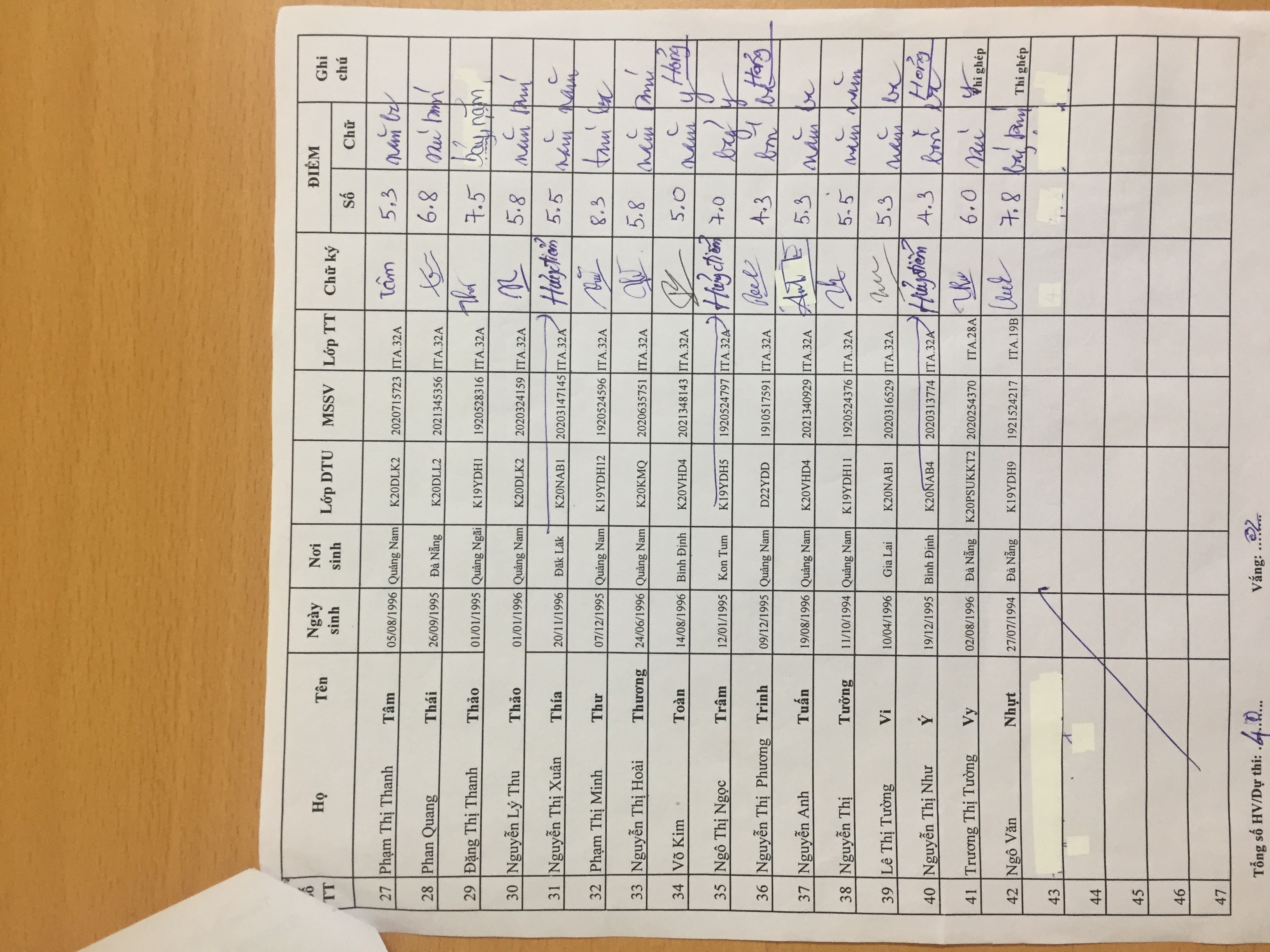 Danh sách thi