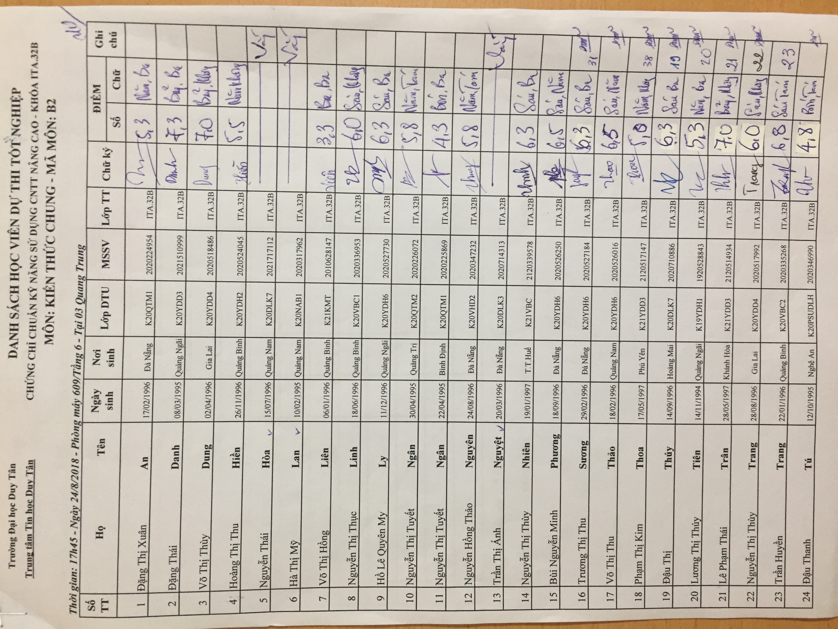 Điểm sát hạch Chứng chỉ Ứng dụng CNTT Nâng cao suất 13h00 ngày 21/12/2025