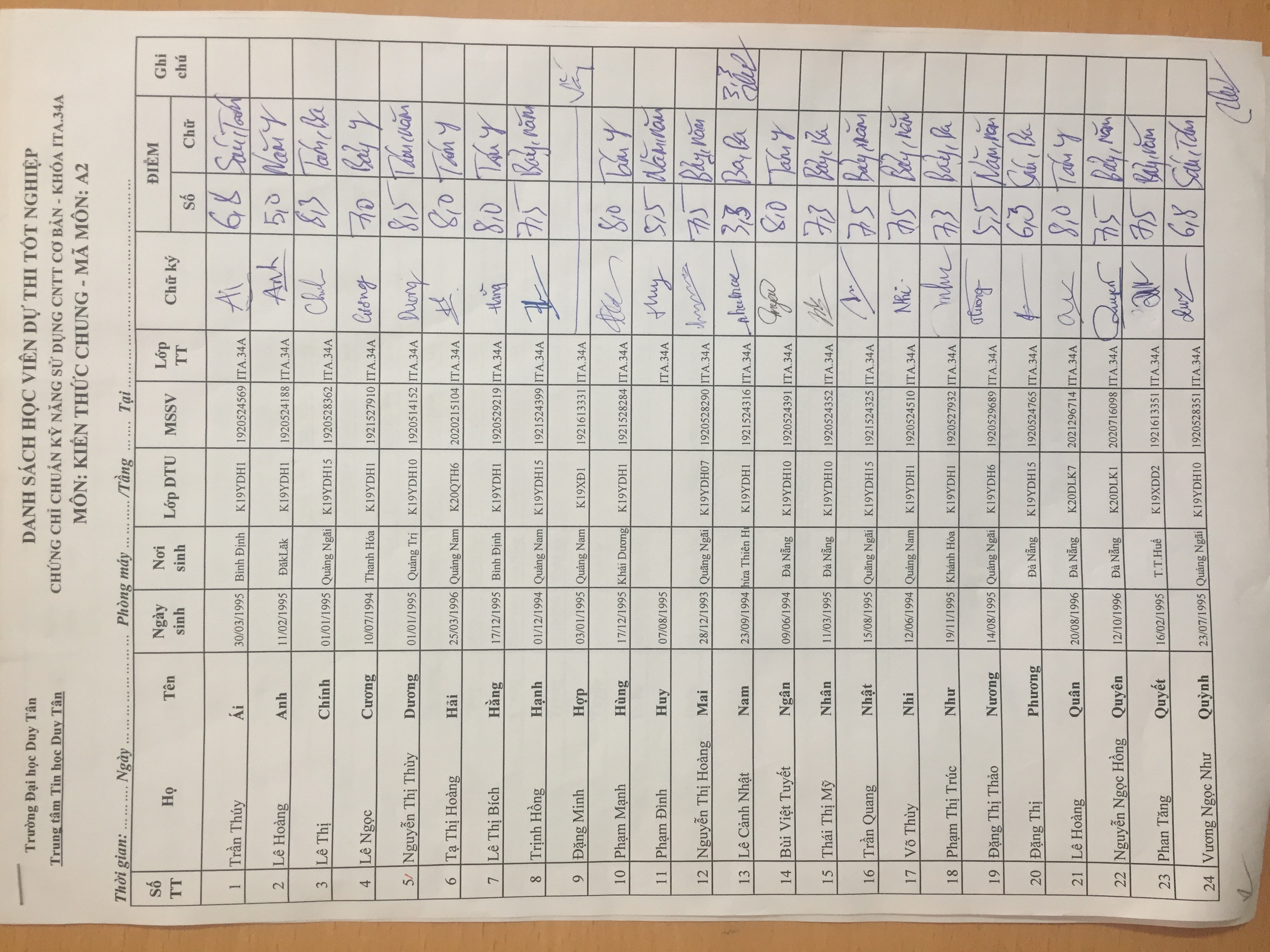 Danh sách thi