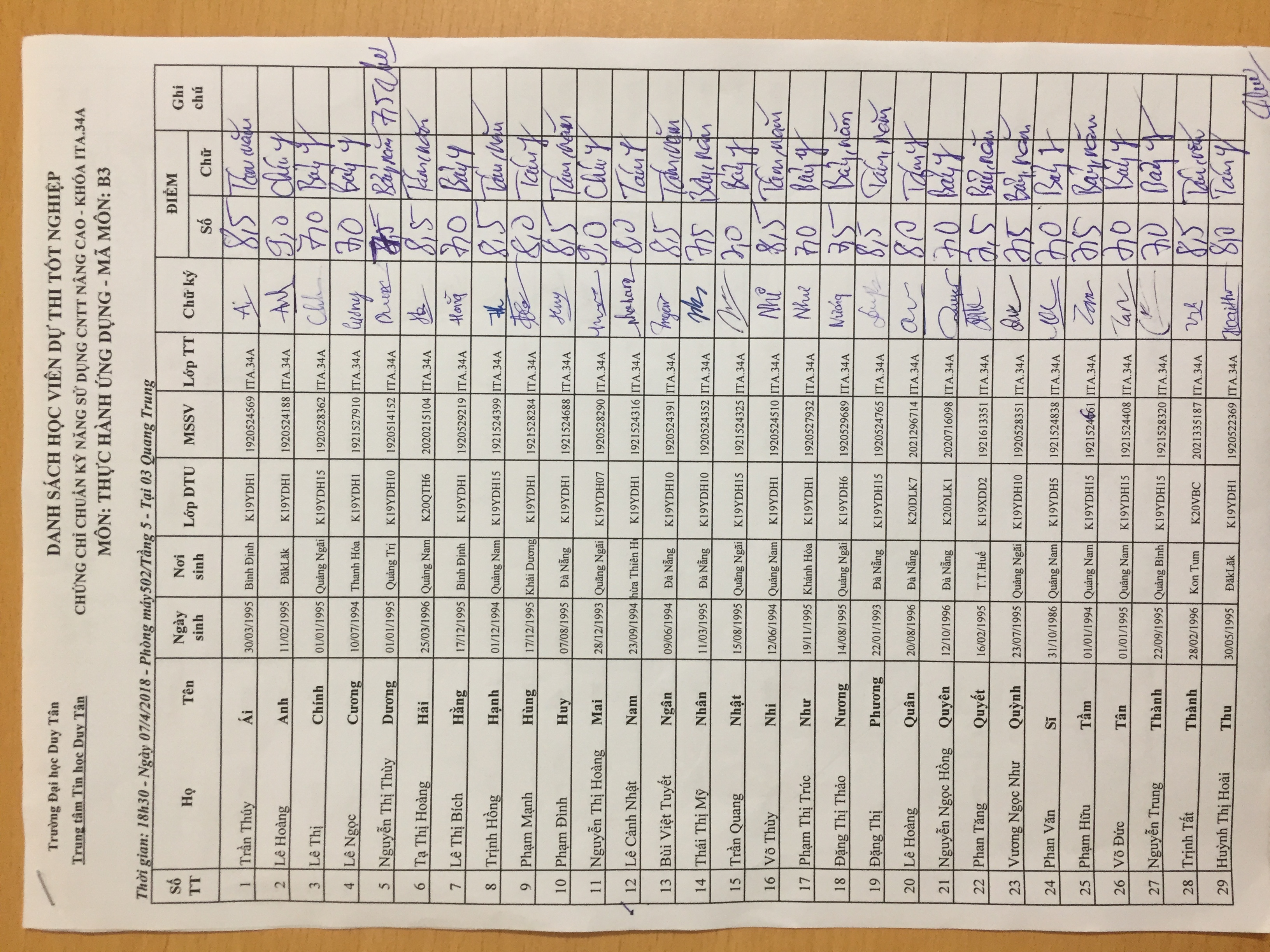 Điểm sát hạch Chứng chỉ Ứng dụng CNTT Nâng cao suất 15h00 ngày 25/01/2026