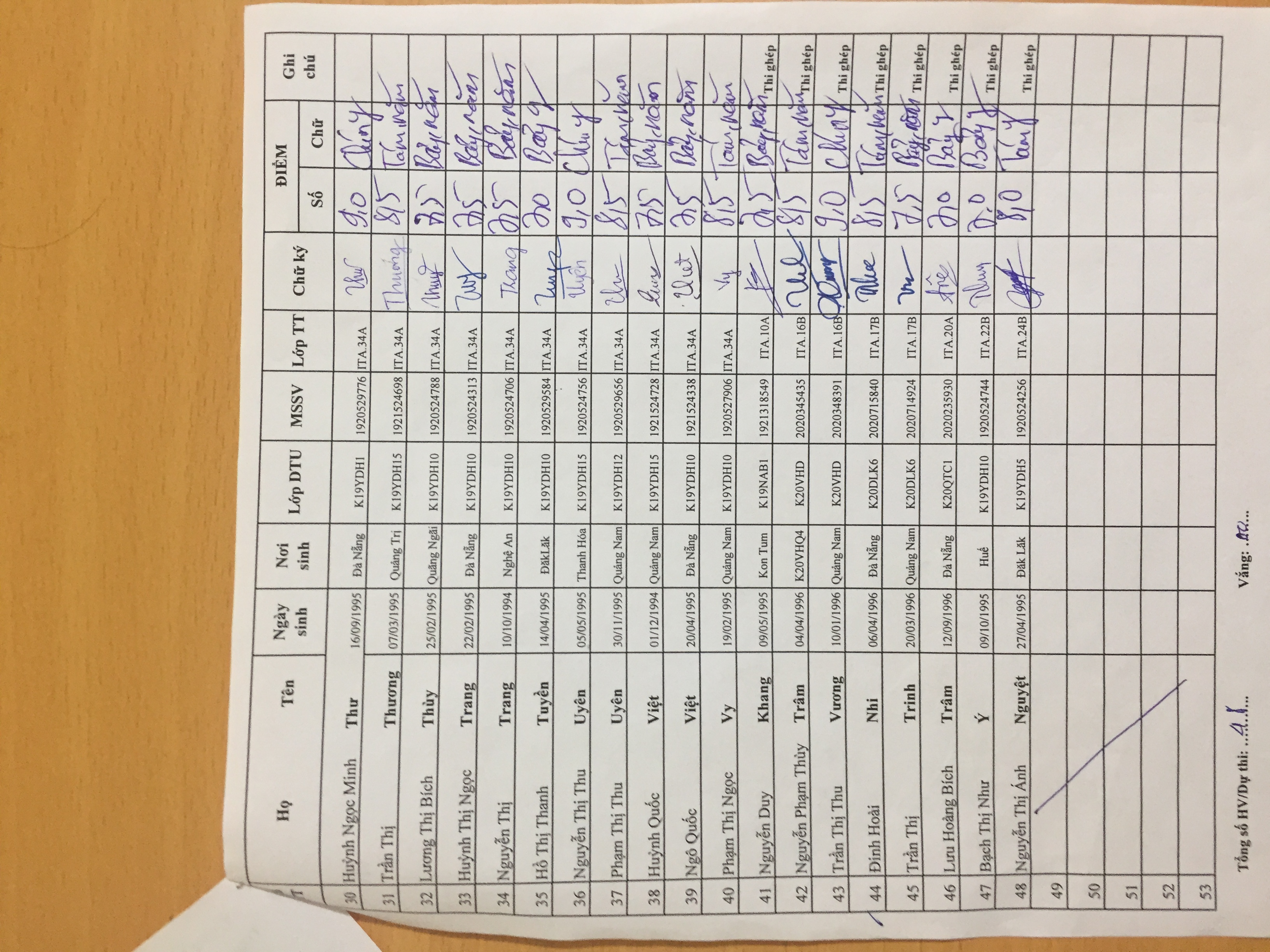 Danh sách thi