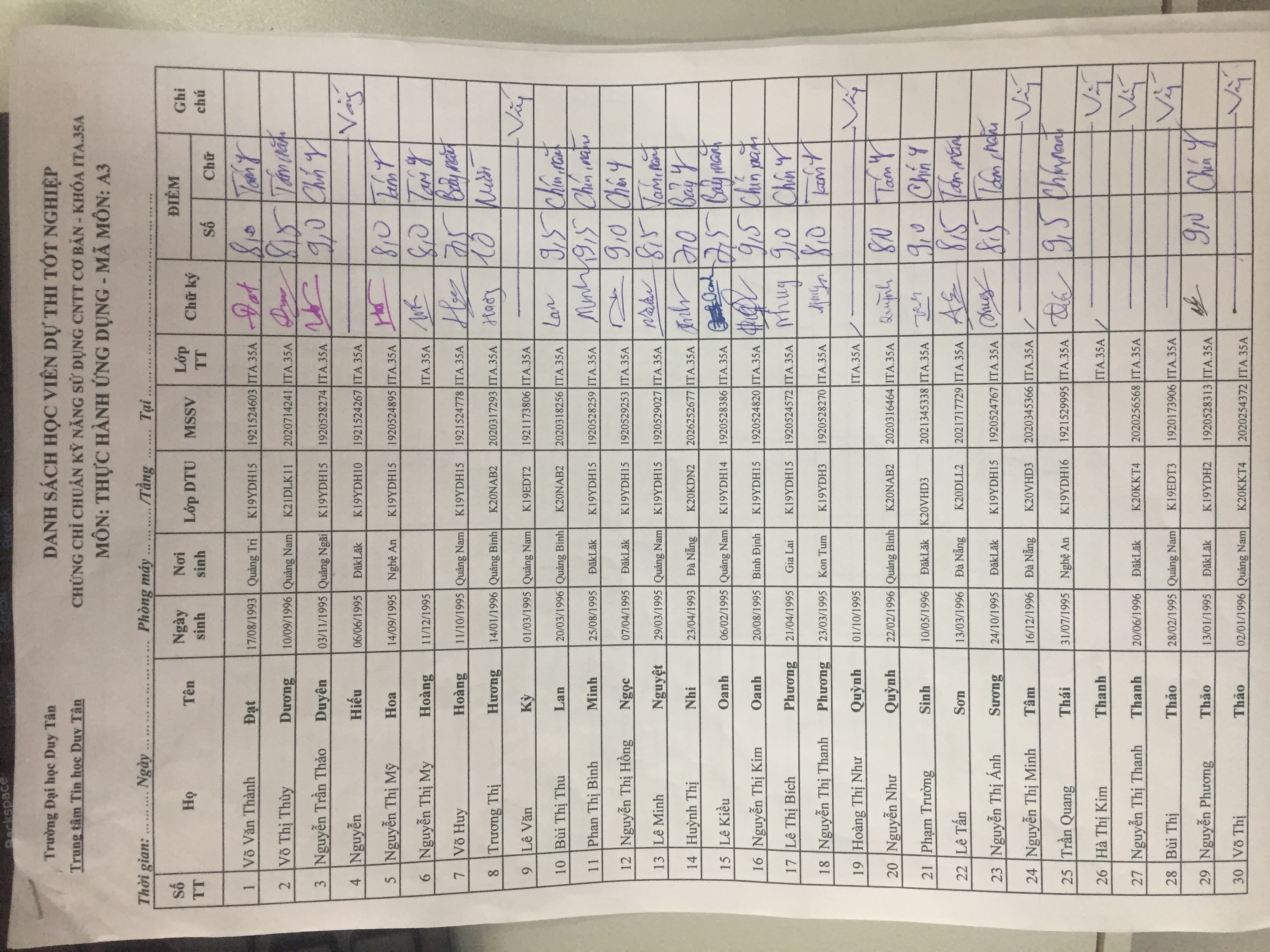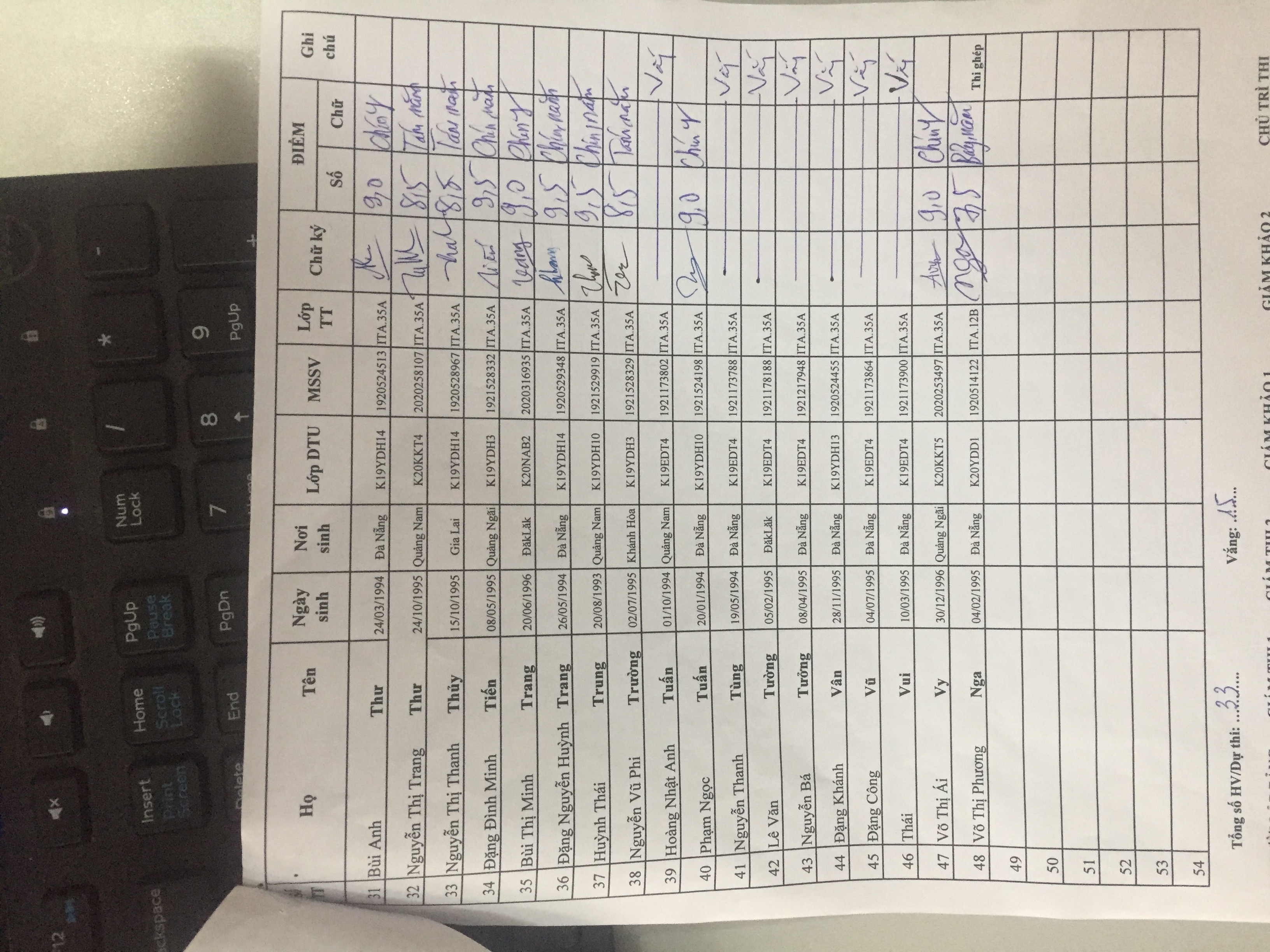 Danh sách thi