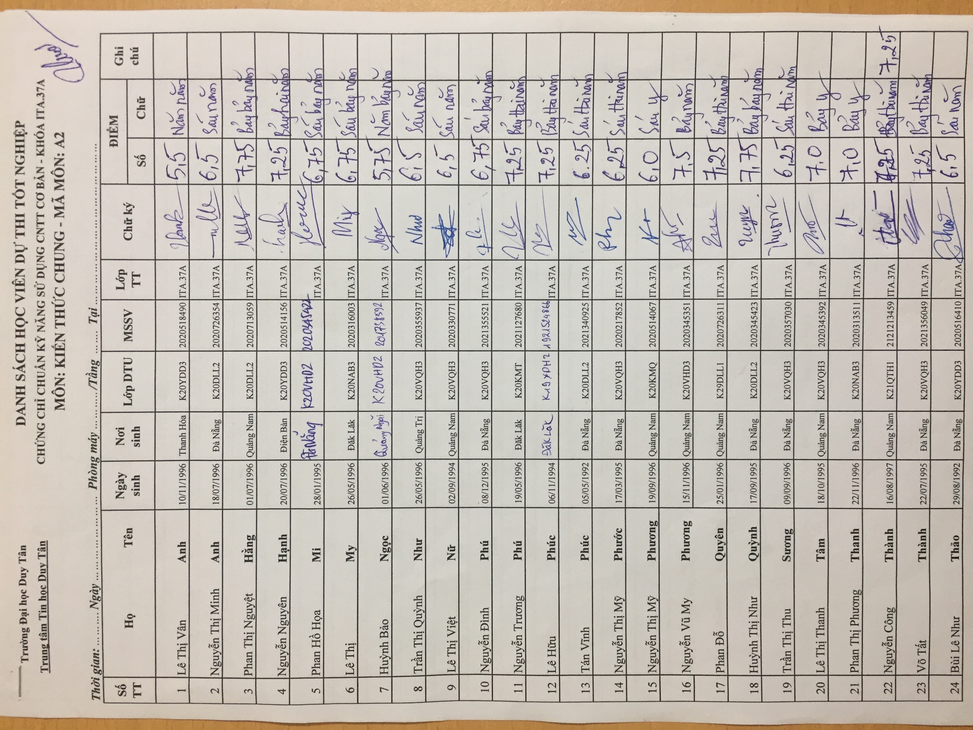 Điểm sát hạch Chứng chỉ Ứng dụng CNTT Nâng cao suất 17h45 ngày 25/01/2026