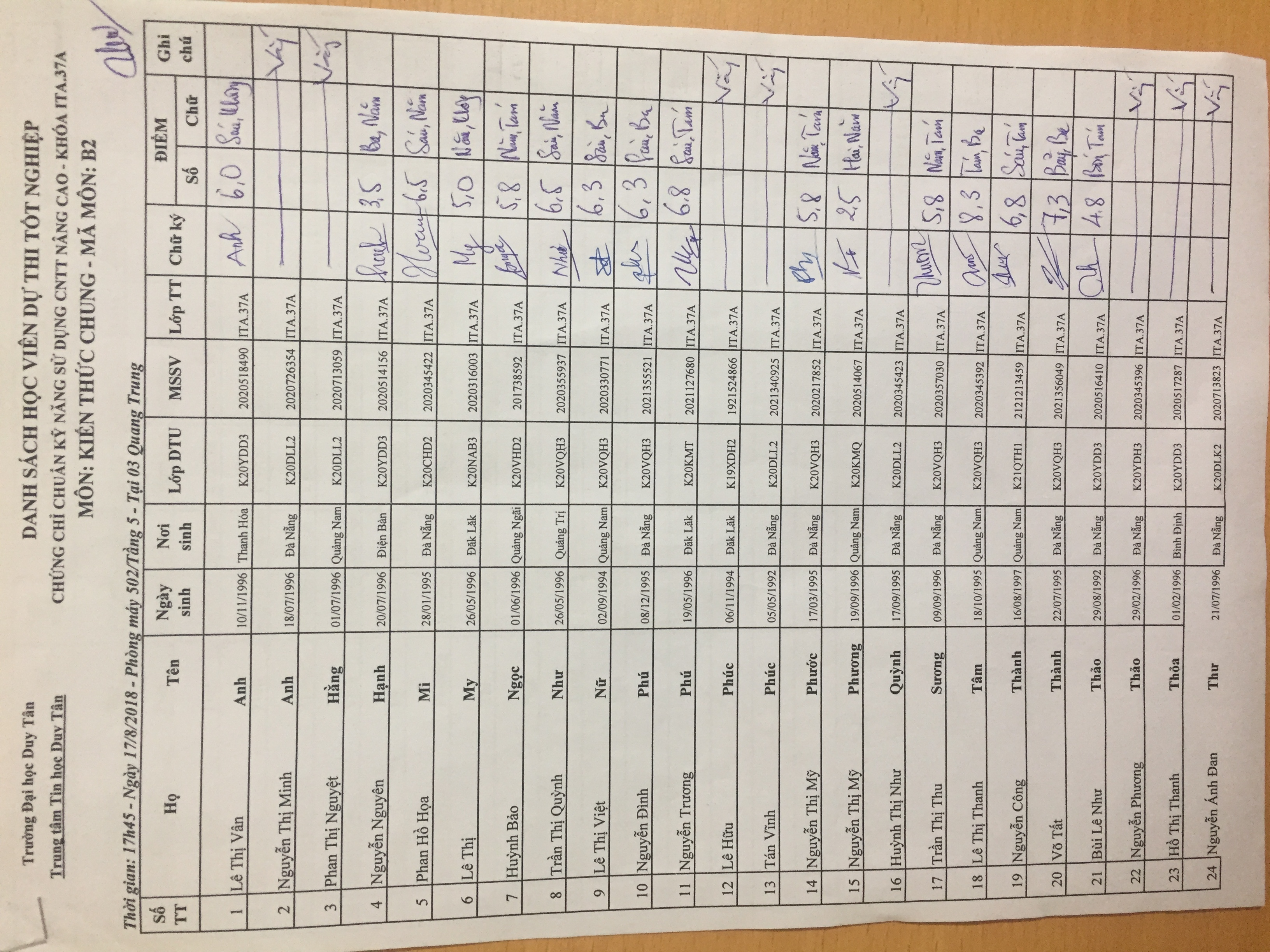 Điểm sát hạch Chứng chỉ Ứng dụng CNTT Nâng cao suất 13h00 ngày 21/12/2025