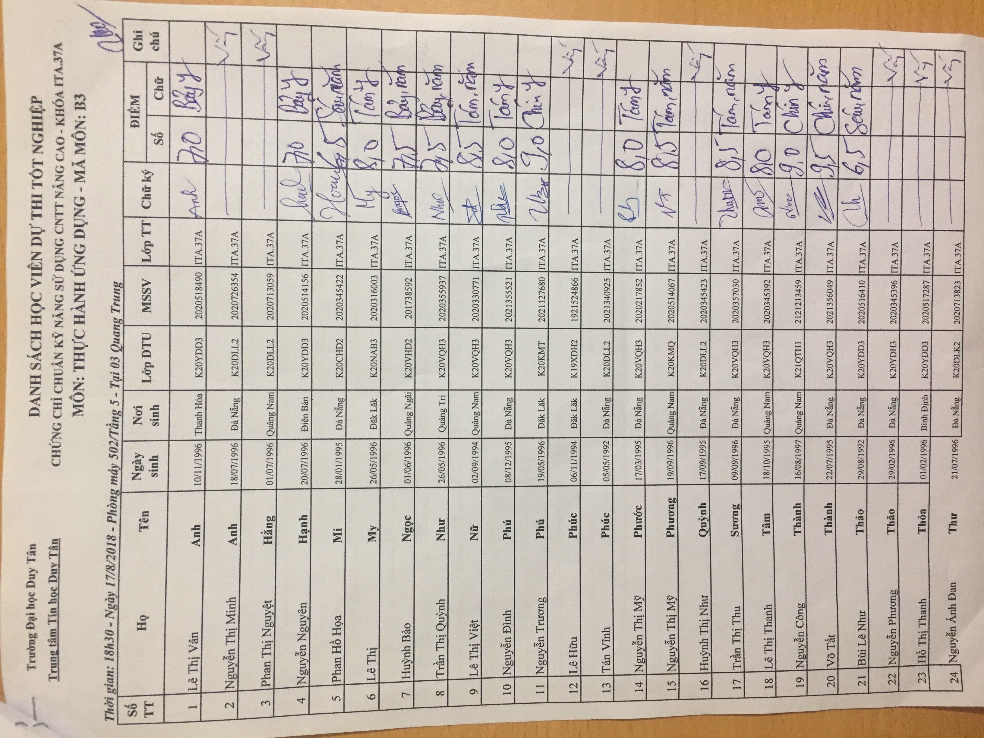 Điểm sát hạch Chứng chỉ Ứng dụng CNTT Nâng cao suất 09h00 ngày 21/12/2025