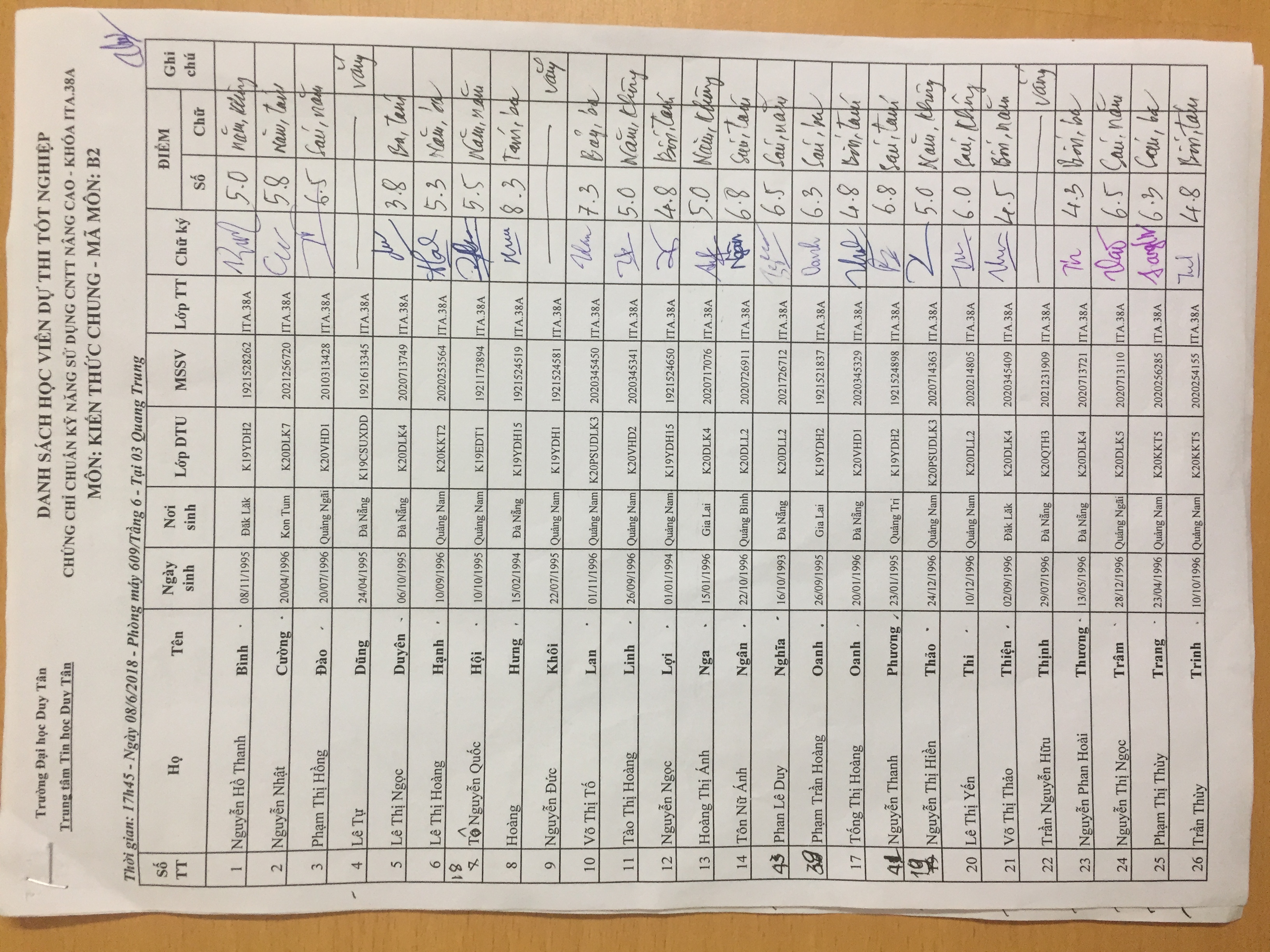 Điểm sát hạch Chứng chỉ Ứng dụng CNTT Nâng cao suất 17h45 ngày 25/01/2026